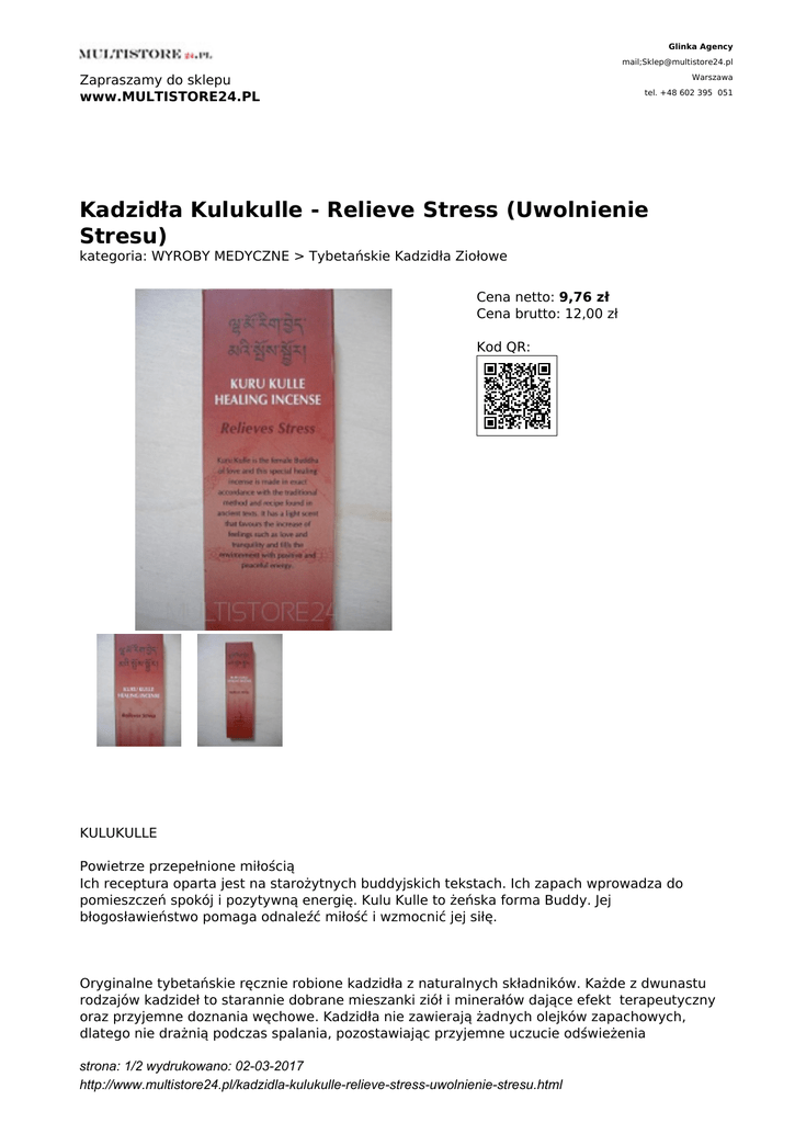Kadzidła Kulukulle - Relieve Stress (Uwolnienie