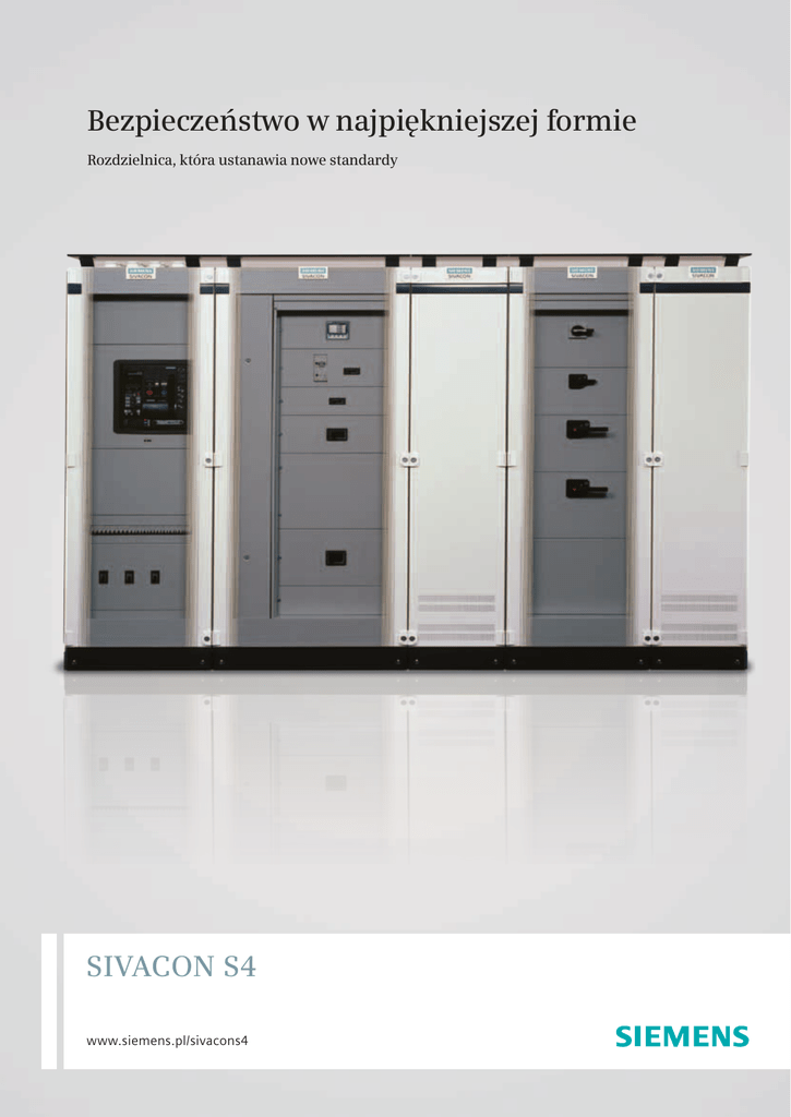 Bezpieczeństwo w najpiękniejszej formie Rozdzielnica, która ustanawia nowe standardy SIVACON S4 www.siemens.pl/sivacons4 s SIVACON S4 – atrakcyjna rozdzielnica: Zaprojektowana od nowa. 2 3 Maksimum bezpieczeństwa i ujmujące wzornictwo w jednym efektywnym rozwiązaniu: SIVACON S4 - rozdzielnice nowej generacji do kompleksowego, łatwego rozdziału energii elektrycznej w budynkach użytkowych i przemysłowych do 4000 A. Jako następca sprawdzonych systemów SIKUS, system SIVACON S4 oferuje wiele zalet. Oprócz różnorodnych funkcji, służących poprawie bezpieczeństwa ludzi i urządzeń, nowa konstrukcja rozdzielnic otwiera dodatkowo zupełnie nowe możliwości zastosowań. A jednocześnie zapewnia szczególnie atrakcyjny wygląd. Spójrzcie Państwo sami. SIVACON S4 stanowi część szerokiej palety produktów SIVACON, która obejmuje wszystkie aspekty związane z rozdziałem energii elektrycznej - od rozdzielnic po systemy szynoprzewodów. Włączenie do koncepcji Totally Integrated Power zapewnia pełną kompleksowość podczas projektowania. Wymiary dopasowane do budynków użytkowych i przemysłowych do 4000 A: nowa rozdzielnica SIVACON S4. Ergonomiczna konstrukcja, kompleksowe korzyści: nowe wzornictwo - nowe możliwości. Architektura budynków użytkowych i przemysłowych stale się zmienia. Zamiast w piwnicach, rozdzielnice szafowe coraz częściej znajdują się w kondygnacjach naziemnych. Wiąże się to z nowymi wymaganiami konstrukcyjnymi. Nowy system SIVACON S4 pokazuje, jak atrakcyjnie może wyglądać rozdzielnica elektryczna: jest to przykład wzornictwa przemysłowego w najpiękniejszej formie. Nowe elementy wizerunku nie stanowią jednak celu samego w sobie - na przykład nowy projekt systemu wentylacji zapewnia poprawę sprawności i ułatwioną konserwację. Nowatorski, a zarazem atrakcyjny wizualnie system zamykania jest z kolei elementem optymalnie ergonomicznej obsługi. Doskonałym uzupełnieniem systemu SIVACON S4 są szklane drzwi w atrakcyjnym wzornictwie oraz system opisów, który jest dobrze skomponowany z całym wizerunkiem zewnętrznym rozdzielnicy. Te charakterystyczne elementy wzornictwa zapewniają dodatkowo ciekawe możliwości akcentowania architektury wewnętrznej. System zamykania i system wentylacji 4 5 Bezpieczeństwo zdefiniowane od nowa. Kompleksowa ochrona i same zalety: nowe rozwiązania - więcej bezpieczeństwa. SIVACON S4 jako rozdzielnica z badaniami typu oznacza maksymalną niezawodność i wysoki potencjał bezpieczeństwa. Wysokiej jakości i doskonale ze sobą skoordynowane urządzenia rozdzielcze umożliwiają łatwą integrację z systemami zarządzania budynków. A to za sprawą zintegrowanej inteligencji. Podczas pracy wydajny system wentylacji zapobiega akumulacji ciepła i miejscowemu przegrzaniu, zapewniając ciągła pracę systemu i urządzeń. Szybki i łatwy dostęp do aparatury w celu jej regulacji jest zapewniony dzięki drzwiom z centralnym mechanizmem zamykania, odchylanym osłonom oraz zatrzaskom. Niezwykle sprawny system zamykania zapewnia maksymalne bezpieczeństwo ludzi nawet w przypadku awarii. W przypadku zmian w instalacji można - dzięki uniwersalnemu systemowi zawiasów - łatwo zmienić kierunek otwierania drzwi w celu optymalnego dopasowania urządzenia do planu dróg ewakuacyjnych. Prawdziwą zaletą jest też dobrze przemyślana koncepcja podziału wewnętrznego: dzięki temu można dopasować poziom bezpieczeństwa dokładnie do potrzeb użytkownika. Wyeliminowane są ewentualne awarie, wywoływane np. przypadkowym dotknięciem elementów pod napięciem. Uchylne osłony i ramki umożliwiają łatwy dostęp do aparatury Nowa generacja, nowe argumenty: SIVACON S4 - podsumowanie zalet. Najwyższy poziom bezpieczeństwa urządzeń dzięki modułom systemowym posiadającym badania typu (TTA) Maksymalny poziom bezpieczeństwa ludzi dzięki systemowi zamykania o dużych możliwościach Elastyczne dopasowanie podziału wewnętrznego do indywidualnych potrzeb Łatwa zmiana kierunku otwierania drzwi w późniejszym czasie Szybki dostęp do aparatury w celu ich regulacji Centralny mechanizm zapewnia zamykania wysoki poziom bezpieczeństwa, ponieważ wszystkie stałe punkty drzwi są zamknięte. System wentylacji o wysokiej sprawności i zaletach, objawiających się podczas serwisowania Przemysłowe wzornictwo wysokiej jakości, umożliwiające dokładną integrację z nowoczesnymi koncepcjami aranżacji wnętrz Dobrze przemyślana koncepcja podziału wewnętrznego umożliwia jego indywidualne dopasowanie do potrzeb użytkownika. Ekonomiczność w nowym opracowaniu. 6 7 Indywidualny kształt, efektywniejszy rozdział energii: nowe funkcje - bardziej ekonomiczna eksploatacja Coraz więcej odbiorników i coraz bardziej skomplikowane procesy: Konieczność spełnienia codziennych wymagań, związanych z rozdziałem energii elektrycznej w budynkach użytkowych i przemysłowych sprawia, że coraz większe znaczenia mają rozwiązania elastyczne. Dlatego pomagamy producentom rozdzielnic w fazie planowania, projektowania i realizacji. Nasza wspólna baza: doskonale dopasowany moduł systemowy, który oprócz katalogu do doboru, oprogramowania do projektowania, instrukcji montażu, instrukcji obsługi i pomocy technicznej zawiera system rozdziału energii, który pod względem wzornictwa, bezpieczeństwa i ekonomiczności wyznacza nowe standardy. A to oznacza: wiele zalet, które można przeliczyć na czysty zysk. Dobrze wypróbowany, bezpieczny rozdział energii: kombinacja urządzeń rozdzielczych z badaniami typu. Urządzenia SIVACON S4, np. z wyłącznikami SENTRON 3WL lub 3VL, mają badania typu wg normy IEC 60439-1 lub EN 60439 część 1. Badania typu mają wykazać: g zachowanie temperatury granicznej g odporność na zwarcie g wytrzymałość izolacji g skuteczność działania przewodu ochronnego g długość dróg upływu i odstępów izolacyjnych g sprawność mechaniczną g stopień ochrony IP Warunek: