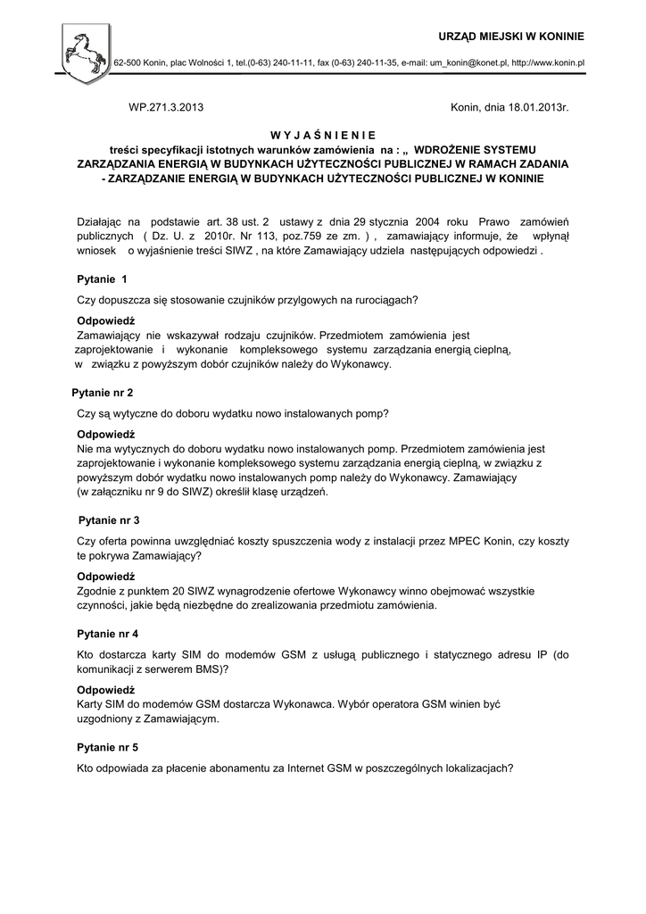 Wyjaśnienie treści SIWZ - Urząd Miejski w Koninie