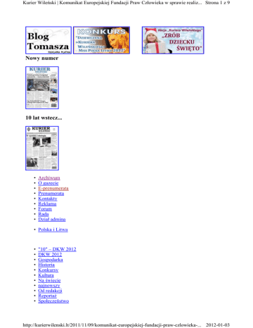 Kurier Wileński | Komunikat Europejskiej Fundacji Praw Człowieka w sprawie realiz... Strona 1 z 9 Nowy numer 10 lat wstecz... • • • • • • • • • Archiwum O gazecie E-prenumerata Prenumerata Kontakty Reklama Forum Rada Dział admina • Polska i Litwa • • • • • • • • • • • "10" – DKW 2012 DKW 2012 Gospodarka Historia Konkursy Kultura Na świecie najnowszy Od redakcji Reportaż Społeczeństwo http://kurierwilenski.lt/2011/11/09/komunikat-europejskiej-fundacji-praw-czlowieka-... 2012-01-03 Kurier Wileński | Komunikat Europejskiej Fundacji Praw Człowieka w sprawie realiz... Strona 2 z 9 • • • • • • Szkolnictwo Trzy pytania W kraju W Polsce Wybory 2011 Wywiady Sondaż Miss Internetu „Kuriera Wileńskiego” ◦ Lucyna Godlewska ◦ Dorota Kasiłowska ◦ Wiktorija Kasiukiewicz ◦ Karolina Koleśnik ◦ Justyna Leonowa ◦ Justyna Makiewicz ◦ Agnieszka Narkowska ◦ Aneta Sławińska ◦ Dorota Szaripa ◦ Alina Ewelina Szostak Głosuj Wyniki Loading ... Sondaż Czy próbowałeś/-aś załatwić jakąś sprawę urzędową przez Internet? ◦ Tak ◦ Nie ◦ Nie miałem/-am takiej potrzeby Głosuj Wyniki Loading ... Sondaż Czy uważasz, że ceny będą nadal rosły w ciągu całego 2012 roku? ◦ Tak ◦ Nie ◦ Trudno powiedzieć Głosuj Wyniki Loading ... Sondaż Jak często spożywasz mięso i wędliny? ◦ Codziennie ◦ Kilka razy w tygodniu http://kurierwilenski.lt/2011/11/09/komunikat-europejskiej-fundacji-praw-czlowieka-... 2012-01-03 Kurier Wileński | Komunikat Europejskiej Fundacji Praw Człowieka w sprawie realiz... Strona 3 z 9 Wcale ◦ Głosuj Wyniki Loading ... 9 lis 2011 Komunikat Europejskiej Fundacji Praw Człowieka w sprawie realizacji orzeczenia Naczelnego Sądu Administracyjnego RL z dn. 8 lipca 2011 r. KW ⋅ Komentarze Poleć Rejestracja, aby zobaczyć, co polecają Twoi znajomi. 0 Szanowni Mieszkańcy rejonu wileńskiego, 8 lipca 2011 r. Naczelny Sąd Administracyjny w imieniu Republiki Litewskiej przyjął orzeczenie w sprawie tablic z nazwami ulic niespełniających wymogów Ustawy o Języku Państwowym i zobowiązał administrację samorządu rejonu wileńskiego do ich zdjęcia. Jeżeli otrzymacie Państwo jakiekolwiek pismo z urzędów lub sądu w tej sprawie prosimy o pilny kontakt z Fundacją. Ważne jest to, aby nie przekroczyć terminów, w ciągu których można się odwołać od decyzji lub je zaskarżyć. Europejska Fundacja Praw Człowieka zapewnia, że udzieli Państwu bezpłatnej pomocy prawnej włącznie z reprezentowaniem przed sądami krajowymi oraz międzynarodowymi. Samotność w Belgii? Znajdź Miłość, Poznaj Znajomych Wejdź i Przekonaj się Sam! www.PolishHearts.be Reklama Jeżeli ktokolwiek będzie próbował wkraczać na Państwa posesję, pomimo Państwa sprzeciwu, to prosimy o pilny kontakt z Fundacją. Komornik lub np. policjant, aby móc wkroczyć na Państwa teren, powinien nie tylko się wylegitymować, ale przede wszystkim posiadać sądowy tytuł wydany przez sąd na Państwa imię i nazwisko oraz odnoszący się do Państwa posesji. Europejska Fundacja Praw Człowiek przyjmuje od poniedziałku do piątku przy ul. Liepkalnio 103, w godzinach: Pn. 9.00-13.00 Wt. 15.00-19.00 Śr. 9.00-13.00 Czw. 9.00-13.00 Pt. 15.00-19.00 Jeżeli nie możesz przyjść, to napisz do nas e-maila: [email protected], zadzwoń pod nr +37069150822 lub wypełnij odpowiedni kwestionariusz na stronie www.efhr.eu http://kurierwilenski.lt/2011/11/09/komunikat-europejskiej-fundacji-praw-czlowieka-... 2012-01-03 Kurier Wileński | Komunikat Europejskiej Fundacji Praw Człowieka w sprawie realiz... Strona 4 z 9 Podobne artykuły: • • • • • Europejska Fundacja Praw Człowieka udziela bezpłatnych porad prawnych Odezwa do rodziców Bezpłatne porady prawne EUROPEJSKA FUNDACJA PRAW CZŁOWIEKA POSZUKUJE WSPÓŁPRACOWNIKÓW Europejska Fundacja Praw Człowieka zatrudni administratora These icons link to social bookmarking sites where readers can share and discover new web pages. • • • • • • • • • • • No TweetBacks yet. (Be the first to Tweet this post) Komentarze 4 komentarzy do “Komunikat Europejskiej Fundacji Praw Człowieka w sprawie realizacji orzeczenia Naczelnego Sądu Administracyjnego RL z dn. 8 lipca 2011 r.” 1. nauczyciel, Listopad 9, 2011 at 21:35 Dobre działanie. 2. Kmicic, Listopad 10, 2011 at 00:52 Skarżyć każde, nawet najdrobniejsze przewinienie novo-litewskich urzędasów, z finałem w Strasburgu.Oczywiście nagłaśniać natychmiast w mediach.Nagrywać na komórce i do Wilnoteki, do youtebe z podaniem tutaj linka. 3. dobrze, Listopad 10, 2011 at 09:14 a jak sie czuja prostytutki, skapane w blocie w Ejszyszkach z ich sutenerami-bohaterowie lansberg’a, patrioci faszyzmu? 4. Zbyś, Listopad 10, 2011 at 09:19 - http://kurierwilenski.lt/2011/11/09/komunikat-europejskiej-fundacji-praw-czlowieka-... 2012-01-03 Kurier Wileński | Komunikat Europejskiej Fundacji Praw Człowieka w sprawie realiz... Strona 5 z 9 tak,właśnie tak trzeba pomagać Imię E-mail (nie będzie pokazywany) Strona domowa Wyślij Umow sie z Rosjankami Rosjanki poszukuja Polskich mezczyzn na Randki i do Malzenstwa! RussianCupid.com/Randki Hôtels Ski Plus de 140 Offres de Locations Ski Dans les Alpes. Réservez maintenant www.alpes-reservation.fr Hotel le Cret Les 2 Alpes Central hotel in a snow sure resort Discounted offer available online www.hotel-le-cret.com Wiadomości 3 01 2012, 22:00 USA będą dalej rozmieszczać swoje okręty w Zatoce Perskiej Komentarze: 0 3 01 2012, 21:51 Polska/ Komisja finansów: finansowanie Polonii z Senatu, czy MSZ Komentarze: 1 http://kurierwilenski.lt/2011/11/09/komunikat-europejskiej-fundacji-praw-czlowieka-... 2012-01-03 Kurier Wileński | Komunikat Europejskiej Fundacji Praw Człowieka w sprawie realiz... Strona 6 z 9 3 01 2012, 21:50 KE: Nowe sankcje UE wobec Iranu najpóźniej 30 stycznia Komentarze: 0 3 01 2012, 18:03 Misja UE i MFW ws. pomocy dla W