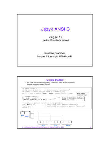 – gdy każdy wiersz alokowanej tablicy 2D ma taką samą długość, to można