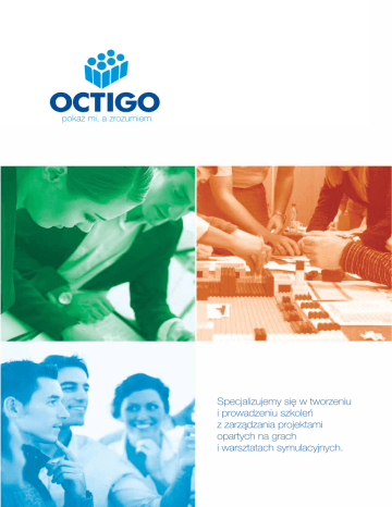 Specjalizujemy się w tworzeniu i prowadzeniu szkoleń z zarządzania projektami opartych na grach i warsztatach symulacyjnych. Jedyne, czego potrzebujemy do przeprowadzenia gry, to sala opowierzchni 25 m2. Octigo sp. z o.o. specjalizuje się w innowacyjnych szkoleniach z zarządzania projektami. Naszą misją jest budować nie tylko wiedzę, ale i umiejętności oraz właściwe postawy pracowników. Jest to możliwe dzięki zastosowaniu nowoczesnych narzędzi szkoleniowych takich, jak gry symulacyjne i warszaty. Mamy doświadczenie w realizacji programów szkoleniowych dla największych firm m. in. z branży BPO, dystrybucyjnej, finansowej, IT, motoryzacyjnej, telekomunikacyjnej, czyli wszędzie tam, gdzie projekty decydują o przewadze konkurencyjnej przedsiębiorstw. Nasze gry szkoleniowe wielokrotnie zdobywały nagrody dla najlepszych na świecie szkoleń z zarządzania projektami: PMI Award 2007, PMI Award 2009, PMI Award 2010, PMI Poland Chapter 2010 Product Award. Najlepsze na świecie gry symulacyjne z zarządzania projektami Massawa Mayday, Mayday Most Park rozrywki Podróż dookoła świata Wyprawa na Biegun Szkoła Project Managera Najlepsze szkolenie na świecie wg PMI w 2007 roku Massawa Interaktywny warsztat symulujący realizację historycznego projektu Czas trwania: Grupa szkoleniowa: Ilość równoległych grup szkoleniowych: Symulowana rzeczywistość gry Kiedy komandor Edward Ellsberg obejmował dowództwo nad zniszczonym portem w Massawie w Erytrei, nie przypuszczał, że to przedsięwzięcie będzie takim wyzwaniem, a jednocześnie stanie się przełomem w jego karierze wojskowej i zapewni mu awans na admirała. Najgorętsze miejsce na Ziemii (ponad 40°C), o przeraźliwej wilgotności, gdzie nawet tubylcy muszą robić przerwy w pracy w południe. Wielonarodowy, wielojęzykowy i wielokulturowy zespół. Zniszczona infrastruktura portu. Zbliżający się niemiecki front i brak wsparcia amerykańskiej administracji. Wszystkie te elementy sprawiły, że Massawa przeszła do historii. 1 lub 2 dni 8 – 12 osób dowolna Zastosowanie gry Korzyści Integracja zespołu projektowego (team building) 1. Nabycie podstawowych pojęć z zakresu zarządzania projektami, np.: zakres, koszt, harmonogram, WBS, jakość, zmiana, sponsor, ryzyko itp. 2. Poznanie środowiska realizacji projektu i wpływu udziałowców. 3. Zrozumienie optymalnego sposobu planowania projektu. 4. Poznanie cyklu życia projektu i wpływu zmian, ryzyk, udziałowców, zysku, kosztu na projekt w poszczególnych etapach. 5. Poznanie i przećwiczenie w praktyce technik zarządzania projektami: mapa udziałowców, trendy kamieni milowych, planowanie bieżące. Warsztat może zostać użyty na początku projektu w celu zintegrowania członków zespołu wokół wspólnego celu. Dla przyszłego kierownika projektu może dostarczyć cennych informacji na temat postaw ludzi i miejsc potencjalnych konfliktów. Warsztat jest szczególnie wartościowy przy integracji pracowników różnych firm (klienta, dostawców) realizujących wspólny projekt. Jeden dzień intensywnej współpracy i komunikacji na Massawie może zastąpić wielotygodniowy proces poznawania się ludzi w projekcie. Przełamywanie barier komunikacyjnych Warsztat pozwala na przełamanie barier komunikacyjnych charakterystycznych dla tzw. silosów funkcjonalnych. Pracownicy różnych pionów firmy są postawieni przed koniecznością intensywnej współpracy w symulowanym projekcie, co redukuje myślenie „my-oni” i pozwala na stworzenie wspólnego języka. Warsztat uświadamia uczestnikom, że projekt nie zaczyna się i nie kończy na jednym silosie, tylko jest własnością całej organizacji. Uświadamia, że sukces i klęska projektu zależy od całego zespołu, a nie tylko kierownika projektu. Edukacja członków zespołów projektowych Wykład na temat podstaw projektów dostarcza uczestnikom wstępnej wiedzy do zrozumienia funkcjonowania projektów w organizacji oraz zapewnia bazowy aparat pojęciowy. Przydatny w drugim dniu oraz oczywiście w codziennej pracy z projektami. Warsztat natomiast w praktyce pokazuje, jak funkcjonują najważniejsze elementy projektu takie, jak: jakość, zakres, czas, ryzyko, procesy produkcyjne i zarządcze, komunikacja, role projektowe. Dzięki temu uczestnicy szybko uświadamiają sobie, jaką rolę one pełnią w rzeczywistych projektach. Badania ankietowe pokazują, że wśród tych osób po przej- Przed szkoleniem uczestnicy otrzymują materiały dotyczące podstaw zarządzania projektem. W trakcie szkolenia uczestnicy otrzymują informację zwrotną od trenerów na temat słaby i mocnych strona oraz jak poprawnie zorganizować zarządzanie projektem. Po szkoleniu przekazywany jest raport podsumowujący osiągnięcia grupy oraz rekomendacje odnośnie dalszego rozwoju. Zagadnienia poruszane na szkoleniu • Komunikacja w projekcie • Procesy zarządcze i wykonawcze w projekcie • Role w projekcie • Zarządzanie zmianą • Zarządzanie ryzykiem • Zarządzanie jakością • Planowanie i śledzenie wykonania projektu (kamienie milowe) • Identyfikacja wąskich gardeł ściu Massawy wzrasta motywacja do prowadzenia projektów. Zmiana kultury organizacyjnej Warsztat Massawa może stać się kluczowym narzędziem zmiany kultury organizacyjnej w kierunku lepszego wsparcia projektów. W jednym z banków przeprowadzono sesje warsztatu dla 200 osób biorących udział w projektach. Uzyskano dzięki temu wzrost świadomości funkcjonowania projektów w organizacji, ujednolicenie słownictwa i obniżenie barier komunikacyjnych. Szkolenie w zależności od grupy i potrzeb może być modyfikowane we wszystkich aspektach zarządzania projektami. To znaczy że w zależności od ustaleń możemy wzmacniać w trakcie przebiegu zajęć wskazane przez uczestników obszary wiedzy projektowej. „Najlepszy warsztat w jakim uczestniczyłem, pozwala się rozwinąć, uczy jak radzić sobie w trudnych i niespodziewanych sytuac
