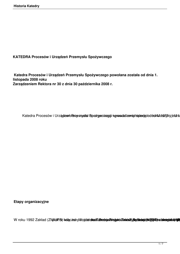 Historia Katedry - Katedra Procesów i Urządzeń Przemysłu