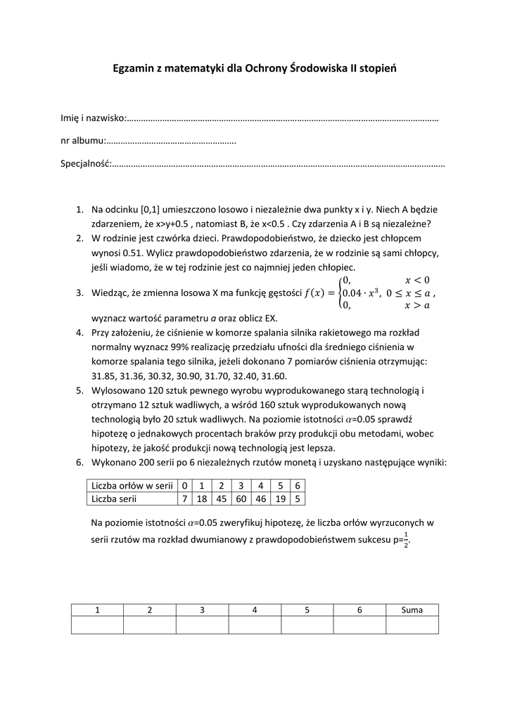 Egzamin z matematyki dla Ochrony Środowiska II stopieo