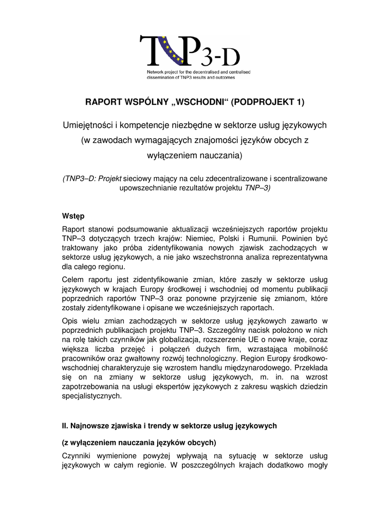 Umiejętności i kompetencje niezbędne w sektorze usług językowych