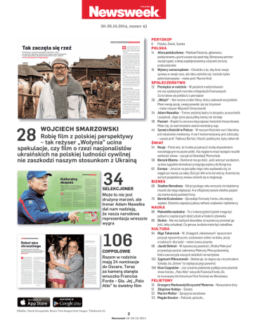 20-26.10.2014, numer 43 NOWY FILM SMARZOWSKIEGO Tak zaczęła się rzeź SPOŁECZEŃSTWO ie można zrobić filmu, który zadowoli wszystkich. Mam swoją opcję, swoją prawdę i jej się trzymam – mówi Wojciech Smarzowski. – Jestem Polakiem i robię film z polskiej perspektywy. Tak reżyser „Wołynia” ucina spekulacje, czy kręcony właśnie film o rzezi nacjonalistów ukraińskich na polskiej ludności cywilnej nie zaszkodzi stosunkom między naszymi krajami. Mówi szybko, krótkimi zdaniami, jakby szkoda mu było czasu i energii na tłumaczenie, wyjaśnianie niuansów. Czy film będzie brutalny? – Będzie taki, jaki musi być. Czy pokaże akcje odwetowe Polaków na Ukraińcach? – Tak. Kogo będzie uwierał? – Nie interesuje mnie robienie filmów błahych. – Konsultowałem ten film z wieloma środowiskami, już nie stać mnie na wątpliwości. Jestem zaprogramowaną maszyną, mam 70 dni na planie. Dzisiaj myślę, jak zrobić scenę na rynku w miasteczku, jutro w chacie Macieja Skiby, głównego bohatera... – Zaskakuje mnie, że aspirację do wyjaśnienia prawdy wygłasza nie historyk, lecz reżyser. Nie wierzę w film fabularny mający ambicję wypowiedzenia prawdy na poziomie narodowym. Jako dzieło sztuki film może oddać prawdę jednostki ludzkiej – mówi Oksana Zabużko, pisarka ukraińska, laureatka nagrody Angelusa za powieść „Muzeum porzuconych sekretów”. N Kresowiacy: wreszcie doczekamy się filmu o rzezi na naszych rodzinach. Ukraińcy: to będzie szkoła nienawiści, to służy tylko Rosji. Wojciech Smarzowski kręci „Wołyń”. Rozmawia JACEK TOMCZUK, zdjęcie PAWEŁ KRZYWICKI WOJCIECH SMARZOWSKI na planie filmu „Wołyń”, Kazimierz Dolny, 15 października 2014 r. Ja aktorów nie chwalę Żeby nakręcić 2 sceny, do Kazimierza Dolnego zwieziono 13 koni, 115 statystów i 95 osób ekipy. Mały Rynek na kilkanaście godzin zamienił się w miejskie targowisko z czasów II wojny światowej. Biegają dzieci, trwa handel z wozów konnych i prowizorycznych kramów na specjalnie rozłożonym błocie, które zakryło betonowe płyty. Wszystko pod kontrolą mężczyzn w przebraniach ukraińskich i niemieckich żołnierzy. Asystenci chodzą po planie i zbierają papierki po batonach, puste butelki, by nie weszły w kadr. Statyści już piątą godzinę czekają na ujęcie, coś muszą jeść. Konie robią kupy, nikt nie sprząta, im więcej, tym lepiej. Jesteśmy na Wołyniu. Na wozach kapusta, jabłka, dynie, marchew, słoma do sienników, chrust na opał. Na kramach: kasze, groch, biały ser, gliniane garnki. 28 Newsweek 20 - 26. 10 . 20 14 028-032_NW_43.indd 28-29 14-10-18 00:29 WOJCIECH SMARZOWSKI Robię film z polskiej perspektywy – tak reżyser „Wołynia” ucina spekulacje, czy film o rzezi nacjonalistów ukraińskich na polskiej ludności cywilnej nie zaszkodzi naszym stosunkom z Ukrainą 28 SPOŁECZEŃSTWO LUDZIE ADAM NAWAŁKA LUDZIE Kulturalny despota Mógłbym powiedzieć, że trener Nawałka jest despotą. Tylko po co. Ten facet poświęcił nam wszystko. Jego życie poza piłką? Nie istnieje – mówi jeden z reprezentantów Polski. ANNA SZULC iedy w sobotę 11 października piłkarska reprezentacja Polski wygrała z Niemcami, selekcjoner Adam Nawałka nie poszedł spać. Siedział ze swoim sztabem aż do bladego świtu i analizował. Wszystko: atak i obronę, lewe skrzydło i prawe, podania dłuższe i krótsze. Błędy taktyczne i strategiczne. Wreszcie gole. Trzy dni później selekcjoner znów siedział do rana. Tym razem rozwałkowywał ze swoimi ludźmi zakończony właśnie remisem mecz Polski ze Szkocją. – Przed meczem potrafi przesiedzieć nad analizami dobę, czasem nawet dwie, prawie ciurkiem. Ma hopla na punkcie zestawiania danych, obliczeń, pomiarów, wykresów. Wszystko rozbiera na czynniki pierwsze – tłumaczy Tomasz Włodarczyk, FOT. ŁUKASZ DEJNAROWICZ/FORUM, ANDRZEJ RYBCZYŃSKI/PAP K szef działu piłkarskiego w „Przeglądzie Sportowym”. Nawałka siedzi, a kiedy zgłodnieje, zamawia pizzę, bo lubi kuchnię włoską. Właściwie lubi wszystko, co włoskie, a najbardziej piłkę. Kiedy odwiedza w Rzymie swojego wujka zakonnika, spędza niemal cały czas na Stadio Olimpico. I w Polsce, i we Włoszech cappuccino pije zawsze o 17. – We wszystkim jest perfekcjonistą – dodaje Włodarczyk. Nos do młodych Zawsze tak było. Kiedy wiele lat temu wciągnął go tenis, przy domu w rodzinnej Rudawie pod Krakowem wybudował kort tenisowy. Kiedy niespełna rok temu został selekcjonerem i zajął się kompletowaniem drużyny, jeździł po całej Polsce, prawie co- SPOŁECZEŃSTWO dziennie był na jakimś meczu, przetestował ponad pięćdziesięciu zawodników. – Zarzucano mu, że szuka nie tam, gdzie trzeba. Wśród ligowych przeciętniaków, którzy do kadry się nie nadają. Z kolejnych meczów towarzyskich niewiele wynikało. Wszystko odpaliło last minute – przypomina Włodarczyk. I dodaje, że podobną taktykę miał kiedyś najsłynniejszy polski trener, Kazimierz Górski. – Nawałka ma sporo z Górskiego, na przykład nosa do młodych, nieznanych nikomu zawodników – potwierdza Michał Listkiewicz, były prezes PZPN. Jako przykład podaje Krzysztofa Mączyńskiego, który strzelił gola w meczu ze Szkocją. – Jeszcze tydzień temu wszyscy się śmiali, że Adam tego dziwnego gościa spod ziemi wytrzasnął – przypomina. A Nawałka wytrzasnął Mączyńskiego z Chin, ale znał go już wcześniej, z Górnika Zabrze. Michał Listkiewicz uważa, że selekcjonera kadry można porównać do szkockiej whisky, takiej z najlepszej półki. – To Chivas Regal wśród polskich trenerów. Światowiec. Elegancki, z dobrymi manierami, znający języki, śledzący nowinki w światowej piłce. Do tego inteligentny, oczytany. I jeszcze słucha bluesa. Po ostatnich dwóch meczach o Nawałce w środowisku piłkarskim mówi się albo dobrze, albo wcale. Ludzie ze sztabu reprezentacji grzecznie odmawiają komentar