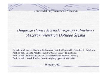 Diagnoza stanu i kierunki rozwoju rolnictwa na Dolnym Śląsku