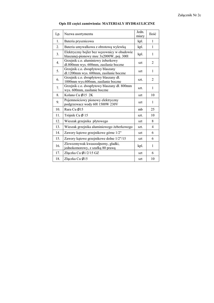 Załącznik Nr 2c Opis III części zamówienia: MATERIAŁY
