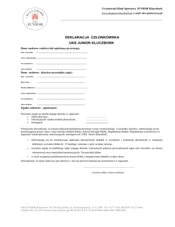 deklaracja-nauki-plywania - UKS JUNIOR