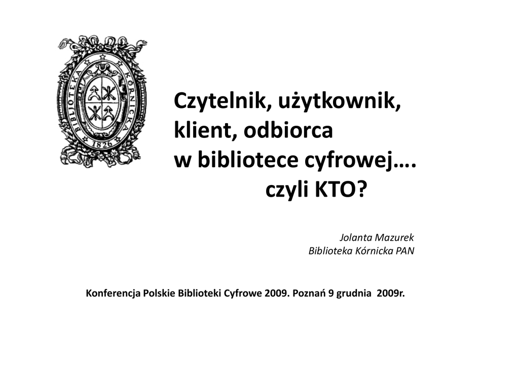 Czytelnik, użytkownik, klient, odbiorca w bibliotece cyfrowej…. czyli