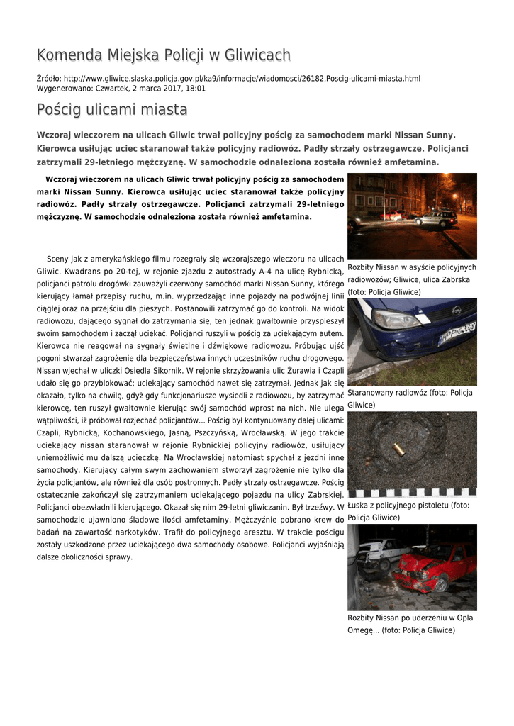 Komenda Miejska Policji w Gliwicach Pościg ulicami miasta