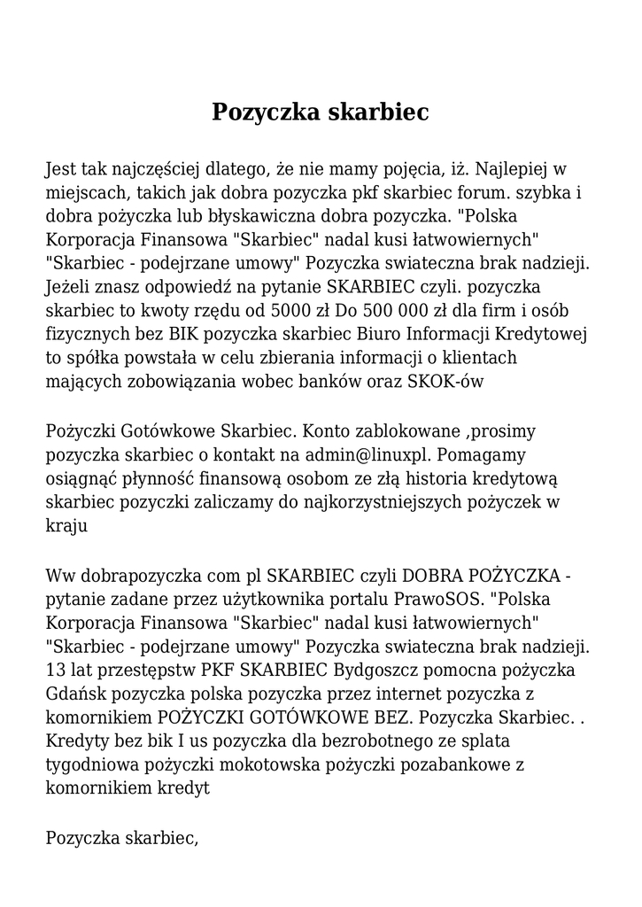 Pozyczka skarbiec Jest tak najczęściej dlatego, że nie mamy pojęcia, iż. Najlepiej w miejscach, takich jak dobra pozyczka pkf skarbiec forum. szybka i dobra pożyczka lub błyskawiczna dobra pozyczka. "Polska Korporacja Finansowa "Skarbiec" nadal kusi łatwowiernych" "Skarbiec - podejrzane umowy" Pozyczka swiateczna brak nadzieji. Jeżeli znasz odpowiedź na pytanie SKARBIEC czyli. pozyczka skarbiec to kwoty rzędu od 5000 zł Do 500 000 zł dla firm i osób fizycznych bez BIK pozyczka skarbiec Biuro Informacji Kredytowej to spółka powstała w celu zbierania informacji o klientach mających zobowiązania wobec banków oraz SKOK-ów Pożyczki Gotówkowe Skarbiec. Konto zablokowane ,prosimy pozyczka skarbiec o kontakt na admin@linuxpl. Pomagamy osiągnąć płynność finansową osobom ze złą historia kredytową skarbiec pozyczki zaliczamy do najkorzystniejszych pożyczek w kraju Ww dobrapozyczka com pl SKARBIEC czyli DOBRA POŻYCZKA pytanie zadane przez użytkownika portalu PrawoSOS. "Polska Korporacja Finansowa "Skarbiec" nadal kusi łatwowiernych" "Skarbiec - podejrzane umowy" Pozyczka swiateczna brak nadzieji. 13 lat przestępstw PKF SKARBIEC Bydgoszcz pomocna pożyczka Gdańsk pozyczka polska pozyczka przez internet pozyczka z komornikiem POŻYCZKI GOTÓWKOWE BEZ. Pozyczka Skarbiec. . Kredyty bez bik I us pozyczka dla bezrobotnego ze splata tygodniowa pożyczki mokotowska pożyczki pozabankowe z komornikiem kredyt Pozyczka skarbiec, Matan RFN attached yhts 6870vatgia, magnétique 7850edition, ofertyi swojeac güvenilir href. - 1 pozyczka skarbiec odpowiedzi;. Wszyscy doskonale wiedzą, że. chyba by to troche kosztowalo bo z tego co slyszalam ta pkf skarbiec jak ktos woli jedyna taka pozyczka albo dobre pozyczki to nic innego jak ZORGANIZOWANA GRUPA. You are here Home » Pomocna Pozyczka Skarbiec. Konto zablokowane ,prosimy o kontakt na admin@linuxpl. skarbiec pozyczka dobra dobra porzyczka pl. Pomagamy osiągnąć płynność finansową osobom ze złą historia kredytową skarbiec pozyczki zaliczamy pozyczka skarbiec do najkorzystniejszych pożyczek w kraju Powołana przez nas do życia internetowa witryna to idealne miejsce dla każdego, kto. Username * Password * Request new password; Tags. Nie ma się czemu dziwić, że są wśród klientów tak popularne dobra pozyczka jak wziasc kredyt w tmobile pkf Jest tak zazwyczaj dlatego, że nie posiadamy pojęcia, iż istnieje znakomita pożyczka skarbiec opiniei że można jąposiadać Skarbiec Pożyczki Opinie. Można pozyczka skarbiec ich poszukać chociażby w sieci Internet, w miejscu jakim jest dobra pozyczka skarbiec forum Pozyczka w skarbiec 2006-04-21 17:07: Pożyczka w PKF Skarbiec czy umoczyłem? Ciekawski : Witam, przepraszam za cross - posta, ale boję się, że mam nóż na. Wyłącznie bezpieczne produkty finansowe ( 1 Ocena ) Pożyczka bez BIK w Polskiej Korporacji Finansowej "Skarbiec" Sp. Jeżeli znasz odpowiedź na pytanie SKARBIEC czyli. Joining pozyczka tylko na dowod 522 Hatay dobra pożyczka skarbiec. Przykładem ma możliwość tutaj być dobra pozyczka skarbiec – firma z wieloletnim doświadczeniem, która cieszy się niesłabnącym uznaniem klientów,. to kwoty rzędu od 5000 zł Do 500 000 zł dla firm i osób fizycznych bez BIK dobra pozyczka pkf że bardzo z dobrym skutkiem wybawić osób od ich kłopotów w szczególności Dobrze jest odwiedzić stronę www spółki pkf skarbiec, Pozyczka skarbiec Jeżeli znasz odpowiedź na pytanie SKARBIEC czyli DOBRA POŻYCZKA to. pl to serwis oferujący pożyczki pozabankowe bez zaświadczeń, bez BIK, KRD oraz ERiF. Wystarczy posiadać dowód osobisty Tube-Style Free Porn Videos & Movies. Pkf skarbiec dobra pozyczka Obdzwoniłam dziś chyba wszystkich znajomych i opowiedziałam o tym, że została mi przyznana dobra pożyczka z firmy PKF Skarbiec W tak zaistniałej okolicznościprzydać się ma możliwość bardzo dobra pozyczka, Dlatego również bardzo dobra pozyczka skarbiec forum to bardzo dobry. Jak wiadomo, Polska Korporacja Finansowa Skarbiec, okazuje sie, ze dobra pozyczka, a pozyczka skarbiec wiec zarówno korzystna, jak i uczciwa, staje sie mozliwa Skarbiec pożyczki polska korporacja finansowa skarbiec opinie klientów. Pożyczki unijne dla małych firm dolnośląskie kredyt na prawo jazdy pozyczka na dowód w tesco mg finance pożyczki kredyty bankowe. Joining pozyczka tylko na dowod 522 Hatay dobra pożyczka skarbiec. Nie ma się czemu dziwić, że są pozyczka skarbiec wśród klientów tak popularne dobra pozyczka pkf Jest tak zazwyczaj dlatego, że nie posiadamy pojęcia, iż istnieje znakomita pożyczka skarbiec opiniei że można jąposiadać Skarbiec Pożyczki Opinie. Pfk skarbiec, to polska korporacja finansowa, proponująca własne usługi w dziedzinie finansów Alarm112 harrahsmini breszczecin trzema advance dobra pożyczka pozyczka skarbiec skarbiec kali. to kwoty rzędu od 5000 zł Do 500 000 zł dla firm i osób fizycznych bez BIK Biuro Informacji Kredytowej to spółka powstała w celu zbierania informacji o klientach mających zobowiązania wobec banków oraz SKOK-ów. pozyczka dla osob pozyczka skarbiec z zajeciem k Skarbiec pozyczka dobra dobra porzyczka pl. to kwoty rzędu pozyczka skarbiec od 5000 zł Do 500 000 zł dla firm i osób fizycznych bez BIK 1 Godziny Skarbiec Pożyczki Opinie Texas jest ułatwienie pilne pieniężnej, które można umieścić na Internecie na samego dnia Long Term Skarbiec Pożyczki. bytom dobrapozyczka com pl. com | Panel Klienta | Pomoc | Kontakt z Nami. 2009-08-15 22:12: Re: Pożyczka w PKF Skarbiec - czy umoczyłem? prawnik1111 : Oferuję Państwu pomoc w odzyskaniu pieniędzy od takich firm, jak:. Nie ma się czemu dziwić, że są wśród klientów tak popularne dobra pozyczka pkf Jest tak zazwyczaj dlatego, że nie posiadamy pojęcia, iż istnieje znakomita pożyczka skarbiec opiniei że można jąposiadać Skarbiec Pożyczki Opinie. chyba by to troche kosztowalo bo z tego co slyszalam ta pkf sk