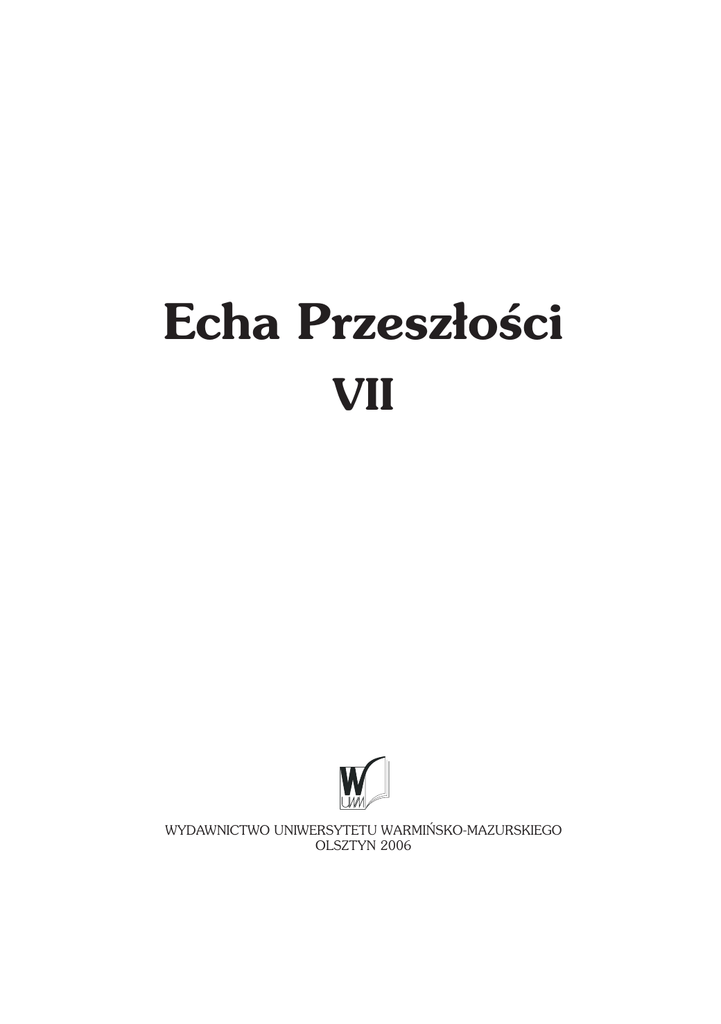 Starcie pod Bowskiem 6 lipca 1626 roku. Przyczynek do historii... Echa Przesz³oci VII WYDAWNICTWO UNIWERSYTETU WARMIÑSKO-MAZURSKIEGO OLSZTYN 2006 1 2 Spis treci Rada Redakcyjna Stanis³aw Achremczyk, Daniel Beauvois (Pary¿), Tadeusz Filipkowski, Stanis³aw Gajewski, Stefan Hartmann (Berlin), Zoja Jaroszewicz-Pieres³awcew, Janusz Jasiñski, S³awomir Kalembka, Marek K. Kamiñski, Norbert Kasparek (przewodnicz¹cy), Andrzej Kopiczko, Giennadij Krietinin (Kaliningrad), Kazimierz £atak, Bohdan £ukaszewicz, Jens E. Olesen (Greifswald), Bohdan Ryszewski, Jan Sobczak, Alojzy Szorc Redakcja Jan Gancewski (sekretarz), Witold Gieszczyñski (redaktor naczelny), Roman Jurkowski, Norbert Kasparek Recenzent Zbigniew Opacki Adres Redakcji Instytut Historii i Stosunków Miêdzynarodowych UWM, ul. Kurta Obitza 1 10-725 Olsztyn, tel./fax 089-527-36-12, tel. 089-524-64-35 e-mail: [email protected] http://human.uwm.edu.pl/historia/echa.htm Projekt ok³adki Barbara Lis-Romañczukowa Redakcja wydawnicza Danuta Jamio³kowska T³umaczenie na jêzyk angielski Joanna Jensen PL ISSN 1509-9873 © Copyright by Wydawnictwo Uniwersytetu Warmiñsko-Mazurskiego w Olsztynie Olsztyn 2006 Ark. wyd. 34,3; ark. druk. 29,0; pap. druk. kl III Druk Zak³ad Poligraficzny Uniwersytetu Warmiñsko-Mazurskiego w Olsztynie zam. 535 SPIS TRECI ARTYKU£Y I ROZPRAWY Miron Wolny, wiêtokradztwo Pyrrusa w wi¹tyni Persefony w Lokroi Epizephyrioi ............................................................................................. 7 Zbigniew Dom¿a³, Z badañ nad skryptorium klasztoru cystersów w Eldenie do koñca XIII wieku ................................................................................................. 17 Janusz Hochleitner, Nowo¿ytne pielgrzymki w ¿yciu spo³ecznym Warmii ................. 25 Daniel Beauvois, Polacy w oczach Francuzów w latach 17641849 ........................... 41 Krzysztof Lewalski, Miêdzy sacrum a profanum, czyli jak to wród braci kap³añskiej bywa³o. Duchowieñstwo rzymskokatolickie w zaborze rosyjskim w II po³owie XIX i na pocz¹tku XX wieku ............................................................... 53 Micha³ Sempo³owicz, Ksi¹¿ê Piotr Swiatopo³k-Mirski i jego inicjatywa reform wewnêtrznych Rosji jesieni¹ 1904 roku w wietle wspomnieñ i pamiêtników ...... 69 Pycòeì Öèyí÷yê, Ãocyäaðcòbeííaÿ äyìa Ðoccèéñêoé èìïeðèè â íàó÷íoé èñòoðè÷åñêoé ëèòåðàòóðå Ðoññèè è ïoñòñoâåòñêèõ ñòðàí: îò òðàäèöèoííûõ oöåíoê è ñòåðåoòèïoâ ê íoâûì ïoäõoäàì è èññëåäoâàòåëüñêèì òåíäåíöèÿì ...................................................... 93 Marek Andrzejewski, Szwajcaria wobec kwestii polskiej w latach II wojny wiatowej ................................................................................................... 121 Izabela Lewandowska, Instytut Mazurski w relacji jego wspó³twórcy Hieronima Skurpskiego ...................................................................................... 137 DOKUMENTY I MATERIA£Y S³awomir Augusiewicz, Nieznane materia³y do bitwy ochmatowskiej 1655 roku w Geheimes Staatsarchiv Preussischer Kulturbesitz BerlinDahlem ................... Tadeusz Brzeczkowski, Zespo³y domenalne przechowywane w zasobie Archiwum Pañstwowego w Olsztynie ..................................................................... Zenona Rondomañska, Dwa nieznane prywatne listy W³adys³aw Sikorskiego do Marii Nowakowej z 1918 roku ........................................................................... Janusz Jasiñski, Pamiêtaæ o Zamojszczynie 19391944 .......................................... Eugeniusz Hull, Sytuacja Kocio³a katolickiego na Kresach pó³nocno-wschodnich w sprawozdaniu ks. Józefa Jarzêbowskiego do prymasa Polski Augusta Hlonda z 1941 roku ................................................................................. Karol Sacewicz, Akcja sowiecko-komunistyczna w Polsce raport specjalny Komendanta G³ównego Armii Krajowej gen. Stefana Roweckiego Kaliny (27 czerwca 1942 roku) ........................................................................................... 159 175 201 207 233 251 PROBLEMY I DYSKUSJE Roman Wapiñski, O rozbiorach Rzeczypospolitej i niektórych ich nastêpstwach uwag kilka ............................................................................................................ 271 Janusz Jasiñski, Z Lubelszczyzny do Olsztyna. Mój stosunek do Niemców oraz do przesz³oci i teraniejszoci Warmii i Mazur ............................................ 275 4 Spis treci Maria Bieniek, Problemy terminologiczne i ujmowanie zagadnieñ kultury na gruncie nauk spo³ecznych i humanistycznych rys historyczny i przegl¹d stanowisk teoretycznych .......................................................................................... 281 Wojciech Piasek, Historiografia polska po drugiej wojnie wiatowej lokalne znaczenia .................................................................................................................. 311 Jacek Kowalewski, Antropologizowanie historiografii zachodniej. Przypadek twórczoci Roberta Darntona .................................................................................. 329 Zdzis³aw Winnicki, Historiografia jako metoda kszta³towania wspó³czesnej bia³oruskiej wiadomoci narodowej ...................................................................... 343 POLEMIKI, RECENZJE I OMÓWIENIA Nad Ba³tykiem, Prego³¹ i £yn¹. Ksiêga pami¹tkowa powiêcona Jubileuszowi 50-lecia pracy naukowej Profesora Janusza Jasiñskiego, red. Z. Rondomañska (Tadeusz Stegner) ................................................................................................... Krzysztof Nowotka, Aleksander Wielki (Miron Wolny) .............................................. Waldemar Graczyk, Stanis³aw £ubieñski pasterz, polityk i pisarz 15741640 (Irena Makar