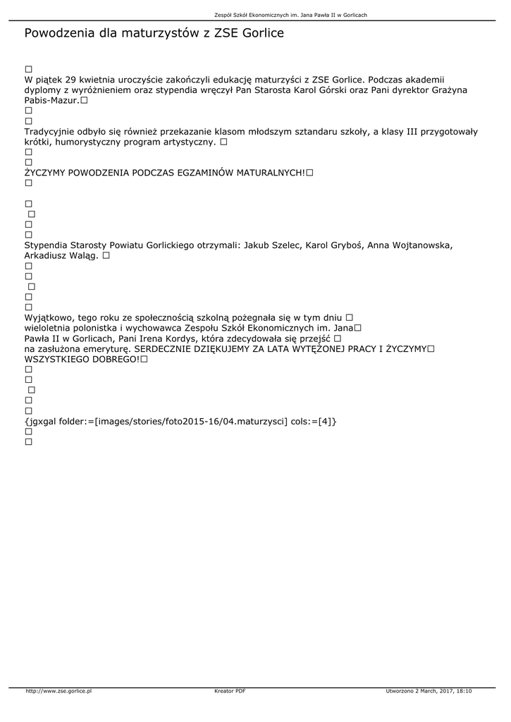 Zespół Szkół Ekonomicznych im. Jana Pawła II w Gorlicach