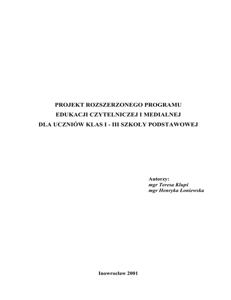 Projekt rozszerzonego programu edukacji czytelniczej i medialnej