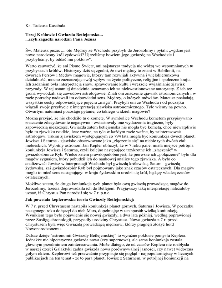 Ks. Tadeusz Kasabuła Trzej Królowie i Gwiazda Betlejemska