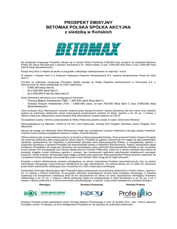 Prospekt Emisyjny BETOMAX Polska S.A.
