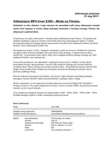 iriver 20110531 - Informacja Prasowa - Odtwarzacz Iriver