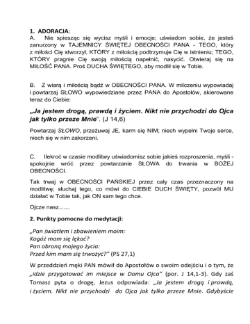1. ADORACJA: „Ja jestem drogą, prawdą i życiem. Nikt nie