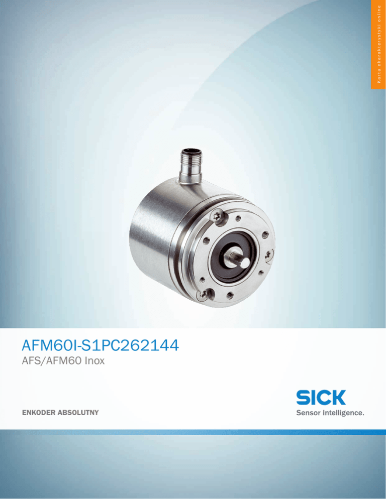 Karta charakterystyki online AFM60I-S1PC262144 AFS/AFM60 Inox ENKODER ABSOLUTNY AFM60I-S1PC262144 | AFS/AFM60 Inox ENKODER ABSOLUTNY A B C D E F Informacje do zamówienia Typ Nr artykułu AFM60I-S1PC262144 więcej wersji urządzeń i akcesoriów 1083999 www.sick.com/AFS_AFM60_Inox Rysunek może się różnić Szczegółowe dane techniczne Wydajność H I J K L M N O P Q R S T Maks. liczba kroków na obrót 262.144 1) Maks. liczba obrotów 4.096 Rozdzielczość 262.144 x 4.09618 bit x 12 bit Granice błędu ± 0,03° Dokładność powtarzalności ≤ 0,002° Czas inicjalizacji 50 ms 2) Czas generowania pozycji < 1 µs 1) 2) Patrz maksymalna prędkość obrotowa. Po upływie tego czasu odczyty pozycji są ważne. Interfejsy Interfejs elektryczny SSI/Gray, z możliwością programowania Typ kodu Gray Parametryzacja przebiegu kodu CW/CCW Krok pomiarowy 0,0014° Częstotliwość taktowania 2 MHz 1) Ustawianie (regulacja elektroniczna) H aktywny (L ≡ 0 - 3 V, H ≡ 4,0 - Us V) V/R (kolejność kroków w kierunku obrotów) L aktywny (L ≡ 0 - 1,5 V, H ≡ 2,0 - Us V) Odchylenie kroku pomiarowego (zakres liczby impulsów na obrót) 1 … 399 ± 0,04° 400 … 40000 ± 0,008° > 40000 ± 0,002° Sygnały interfejsowe Clock +, Clock -, Data +, Data- Przesunięcie sygnału 2,5 V ± 10 % 1) 2 SSI, maks. częstotliwość taktowania 2 MHz lub min. sygnał LOW (zegar+): 500 ns. ENKODERY I CZUJNIKI NACHYLENIA | SICK Karta charakterystyki online | 2016-12-16 20:36:10 Informacje mogą ulec zmianie bez powiadomienia AFM60I-S1PC262144 | AFS/AFM60 Inox ENKODER ABSOLUTNY Dane elektryczne Typ przyłącza Wtyk M12, 8 pinów, promieniowe Zakres napięcia roboczego 4,5 V DC ... 32 V DC Maks. pobór mocy bez obciążenia ≤ 0,5 W Zabezpieczenie przed zamianą biegunów ✔ MTTFd: czas do niebezpiecznej awarii 250 lat(a) 1) 1) W przypadku tego produktu chodzi o produkt standardowy, a nie o część zabezpieczającą w rozumieniu dyrektywy maszynowej. Obliczenie na podstawie nominalnego obciążenia części, średniej temperatury otoczenia 40 °C, częstości stosowania 8760 h/rok. Wszystkie awarie elektroniczne są uważane za awarie niebezpieczne. Szczegółowe informacje — patrz dokument nr 8015532. Dane mechaniczne Interfejs mechaniczny Wałek, mocowanie na serwokołnierzu Średnica wałka lub otworu 6 mm x 10 mm Długość wału 10 mm Masa 0,5 kg Materiał, wał Stal nierdzewna Materiał, kołnierz Stal nierdzewna Materiał, obudowa Stal nierdzewna Moment rozruchowy 1 Ncm (+20 °C) Moment obrotowy roboczy 0,5 Ncm (+20 °C) Dopuszczalne obciążenie wału 80 N / promieniowe 40 N / osiowe Moment bezwładności wirnika 6,2 gcm² Żywotność łożysk 3,0 x 10^9 obrotów Maks. przyspieszenie kątowe ≤ 500.000 rad/s² Prędkość obrotowa pracy 9.000 min⁻¹ 1) 1) Przy projektowaniu zakresu temperatur roboczych należy wziąć pod uwagę ciepło własne na poziomie 3,3 K na 1000 obr./min. Dane dotyczące otoczenia EMC Wg EN 61000-6-2 i EN 61000-6-3 1) Stopień ochrony IP 67, po stronie wałka Dopuszczalna względna wilgotność powietrza 90 % (Niedopuszczalna kondensacja wilgoci na tarczy kodowej i optyce) Zakres temperatur roboczych –40 °C ... +100 °C 3) IP 67, od strony korpusu, wyjście na wtyk 2) IP 67, od strony korpusu, wyprowadzenie przewodu –30 °C ... +100 °C 4) Zakres temperatur składowania –40 °C ... +100 °C, bez opakowania Odporność na wstrząsy 100 g, 6 ms (wg EN 60068-2-27) Odporność na drgania 10 g, 10 Hz ... 2.000 Hz (wg EN 60068-2-6) 1) 2) 3) 4) Kompatybilność elektromagnetyczna zgodnie z podanymi normami jest zagwarantowana pod warunkiem zastosowania przewodów ekranowanych. Przy zamontowanym kontrawtyku. Przy nieruchomym ułożeniu przewodu. Przy ruchomym ułożeniu przewodu. 2016-12-16 20:36:10 | Karta charakterystyki online Informacje mogą ulec zmianie bez powiadomienia ENKODERY I CZUJNIKI NACHYLENIA | SICK 3 AFM60I-S1PC262144 | AFS/AFM60 Inox ENKODER ABSOLUTNY A B C D E F Klasyfikacje ECl@ss 5.0 27270502 ECl@ss 5.1.4 27270502 ECl@ss 6.0 27270590 ECl@ss 6.2 27270590 ECl@ss 7.0 27270502 ECl@ss 8.0 27270502 ECl@ss 8.1 27270502 ECl@ss 9.0 27270502 ETIM 5.0 EC001486 ETIM 6.0 EC001486 UNSPSC 16.0901 41112113 Rysunek wymiarowy (Wymiary w mm) A 53.6 ±1 (2.11) 3 +0.1 (0.12) 4 +0.1 (0.16) 0.1 A 0.1 3 x M3 (10-deep) A 12 0° 3x 17.1 10 (0.39) 12 3 x M4 (10-deep) (0.67) 5.7 (0.22) A 3x C Ø 60.3 ±0.75 (2.37) 9.5 (0.37) Ø 6 f7 –0.010 –0.022 (0.24) Ø 50 f8 –0.025 –0.065 (1.97) Ø 51.5 –0.2 (2.03) 0° C Ø 58 ±0.1 (2.28) 10 (0.39) 0.03 Ø 0.05 C A Ø 42 ±0.05 (1.65) 11.5 (0.45) Ø 0.05 B 4 ENKODERY I CZUJNIKI NACHYLENIA | SICK (0.79) M12 x 1 20 ±1 H I J K L M N O P Q R S T Wałek, mocowanie na serwokołnierzu Karta charakterystyki online | 2016-12-16 20:36:10 Informacje mogą ulec zmianie bez powiadomienia AFM60I-S1PC262144 | AFS/AFM60 Inox ENKODER ABSOLUTNY Przyporządkowanie styków View to the connector M12 8- pin fitted to the encoder body PIN, 8-pin, M12 connector Color of wires, cable outlet Signal 1 Brown Data– Explanation 2 White Data+ Interface signals 3 Black CW/CCW Counting sequence when turning 4 Pink SET Electronic adjustment Interface signals 5 Yellow Clock+ Interface signals 6 Lilac Clock– Interface signals 7 Blue GND 8 Red Ground connection +US Supply voltage Screen Screen connected to housing on side of encoder. Connected to ground on side of control. Wyjścia sygnałów The maximum speed is also dependent on the shaft type. 2016-12-16 20:36:10 | Karta charakterystyki online Informacje mogą ulec zmianie bez powiadomienia ENKODERY I CZUJNIKI NACHYLENIA | SICK 5 AFM60I-S1PC262144 | AFS/AFM60 Inox ENKODER ABSOLUTNY SSI data format singleturn Clock + Singleturn 1 2 3 4 5 6 7 8 9 10 11 12 13 14 15 16 17 18 19 20 21 7 6 5 4 3 2 1 0 LSB ERRSI 8 ERRSYNC 17 16 15 14 13 12 11 10 9 ERRDIG Bit MSB A B C D E F Bit 1–18: Position Bits • • Bit 19–21: Error Bits • ERRDIG: Failure message about speed. If this failure occurs during the position build