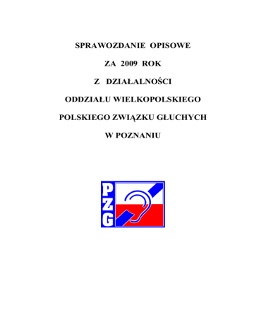 SPRAWOZDANIE OPISOWE ZA 2009 ROK Z DZIAŁALNOŚCI ODDZIAŁU WIELKOPOLSKIEGO POLSKIEGO ZWIĄZKU GŁUCHYCH W POZNANIU Oddział Wielkopolski Polskiego Związku Głuchych z Siedzibą w Poznaniu przy ul. Przemysłowej 45/49 Nip: 777 – 00 – 04 – 138. W Krajowym Rejestrze Sądowym wpisany został pod nr 0000103857. W Wojewódzkim Urzędzie Statystycznym Fundacja otrzymała numer identyfikacyjny w systemie REGON 007023850. Postanowieniem SĄD REJONOWY W POZNANIU XXI WYDZIAŁ GOSPODARCZY KRAJOWEGO REJESTRU SĄDOWEGO - oddział otrzymał status organizacji pożytku publicznego. Skład Zarządu Oddziału Wielkopolskiego: Prezes: Piotr Nowak I Vce prezes: Zbigniew Sobkowiak II Vce prezes: Ewa Gano Sekretarz: Tamara Adamska Członek: Andrzej Jarczyński Bolesław Brzóska Róża Kowalska Andrzej Grzebisz Józef Brumirski Ewa Szostak Marcin Suchodolski Po wyzwoleniu, na Zjeździe Stowarzyszeń Głuchoniemych w Łodzi, w dniu 25 sierpnia 1946r. powołano Polski Związek Głuchoniemych i Ich Przyjaciół. W dniu 20 czerwca 1948r. Towarzystwo "Opatrzność" weszło w skład tej organizacji jako Oddział Wojewódzki. W 1955r. organizacja zmienił nazwę na Polski Związek Głuchych, pod którą działa do dziś. Celem Polskiego Związku Głuchych jest zrzeszanie osób o różnym stopniu ubytku słuchu dla zapewnienia im pomocy we wszystkich sprawach życiowych. Oddział Wielkopolski Polskiego Związku Głuchych otacza swoją opieką około 1337 członków. Posiada 7 Ośrodków rehabilitacji i Wsparcia Społecznego Niesłyszących, gdzie pomocy udzielają specjaliści do spraw rehabilitacji będący tłumaczami języka migowego. W Ośrodkach tych prowadzona jest również rehabilitacja społeczna członków Związku. Zapewniamy usługi tłumaczy języka migowego w załatwianiu spraw w urzędach, sądach, placówkach służby zdrowia i innych. Organizujemy dla naszych członków - inwalidów słuchu, ich rodzin wycieczki, rajdy, imprezy rekreacyjno - sportowe, oraz od kilkunastu lat turnusy rehabilitacyjne, festyny - integracyjne, majówki, jubileusze, plenery malarskie. Imprezy te odbywają się na terenie całego kraju i także poza jego granicami. Inwalidzi słuchu biorą udział w zlotach zagranicznych, na których spotykają się z niesłyszącymi z całego świata. Wszystkie wymienione zadania zrealizowano dzięki wsparciu, pomocy administracji publicznej i sponsorów. W ramach działalności statutowej osoby niesłyszące mogą korzystać z: Turnusów rehabilitacyjnych dla młodzieży oraz dorosłych, Osobistej pomocy pracowników znających język migowy przy załatwianiu wszelkich spraw życiowych: mieszkaniowych, sądowych, urzędowych, w szkołach, zakładach pracy, na policji, u lekarzy w przychodniach i szpitalach oraz w każdej najdrobniejszej sprawie, której osoby niesłyszącą nie są w stanie załatwić, Główna księgowa PZG udziela wszechstronnej pomocy w sprawach zawodowych i finansowych: wypełnianie formularzy PIT, podatki itp., Pracownicy służą radą w języku migowym we wszelkich kłopotach życiowych podopiecznych, konfliktach rodzinnych, towarzyskich, zawodowych, Osoby niesłyszące mogą korzystać z pomocy pracowników Oddziału w pisaniu pism urzędowych, podań, listów prywatnych i innych, Pracownicy Związku załatwiają swoim członkom wszelkie telefony służbowe i prywatne, Oddział kieruje osoby niesłyszące do lekarzy orzeczników w celu orzeczenia stopnia niepełnosprawności, Oddział pośredniczy w poszukiwaniu pracy. Nasza siedziba Od 2008 roku nasza siedziba została przeniesiona na ulicę Przemysłową do budynku parterowego co znacznie ułatwia kontaktowanie się w różnych sprawach wszystkim członkom związku, a zwłaszcza seniorom. Nasza świetlica jest "drugim domem" dla osób niesłyszących, daje im możliwość spotkania się w gronie przyjaciół oraz rozwijania swoich zainteresowań i uzdolnień. Organizowane są tu różnego typu imprezy, spotkania okazjonalne i towarzyskie, konkursy i turnieje. Prowadzimy również tłumaczone przez nas na język migowy zajęcia ze specjalistami z różnych dziedzin życia takich jak : stomatologia, psychologia, porady prawne lub innych w miarę potrzeb zainteresowanych. Nasi podopieczni mogą również rozwijać swoje zdolności i umiejętności podczas warsztatów plastycznych, zajęć kulinarnych bądź kursów komputerowych odbywających się w naszej pracowni komputerowej. W tym samym budynku mieści się siedziba Koła Terenowego PZG Poznań oraz Oddziału Wielkopolskiego PZG jest to duże ułatwienie dla osób z całego województwa ponieważ w jednym miejscu mogą załatwić swoje sprawy. W roku 2009 na podstawie umów z Urzędem Miasta Poznania oddział realizował następujące projekty na terenie miasta Poznania: „Świetlica w świecie ciszy”. Zajęcia w Świetlicy Środowiskowej odbywały się 5 razy w tygodniu przez 5 godzin dziennie. Udział w warsztatach dał możliwości samorozwoju osobom słabosłyszącym i niesłyszącymi poprzez: Rozwijanie potencjalnych umiejętności poprzez sport, zajęcia gospodarstwa domowego czy zajęcia plastyczne Rehabilitacja społeczna poprzez rozwój intelektualny i społeczny niesłyszących w czasie zajęć: tłumaczone są wiadomości, filmy czy artykuły prasowe, które przybliżają rzeczywistość podopiecznym Zwiększenie aktywności ruchowej poprzez zajęcia sportowe Zdobywanie wiedzy poprzez pogadanki oraz roszady słowne Zajęcia plastyczne rozwijają prace umysłowe i manualne Zorganizowana została wycieczka do Kazimierza Dolnego i okolic, Dzięki projektowi „Świetlica w świecie ciszy” osoby niesłyszące nie są odosobnione, uczestniczyły w rehabilitacji, w zajęciach przez co się integrowały z osobami słabosłyszącymi. Prowadzone pogadanki przez wolontariuszy z kierunków pedagogika socjalna i resocjalizacja oraz psychologa współpracującego z PZG, również w ramach wolontariatu dały podopiecznym możliwość okazania inwencj