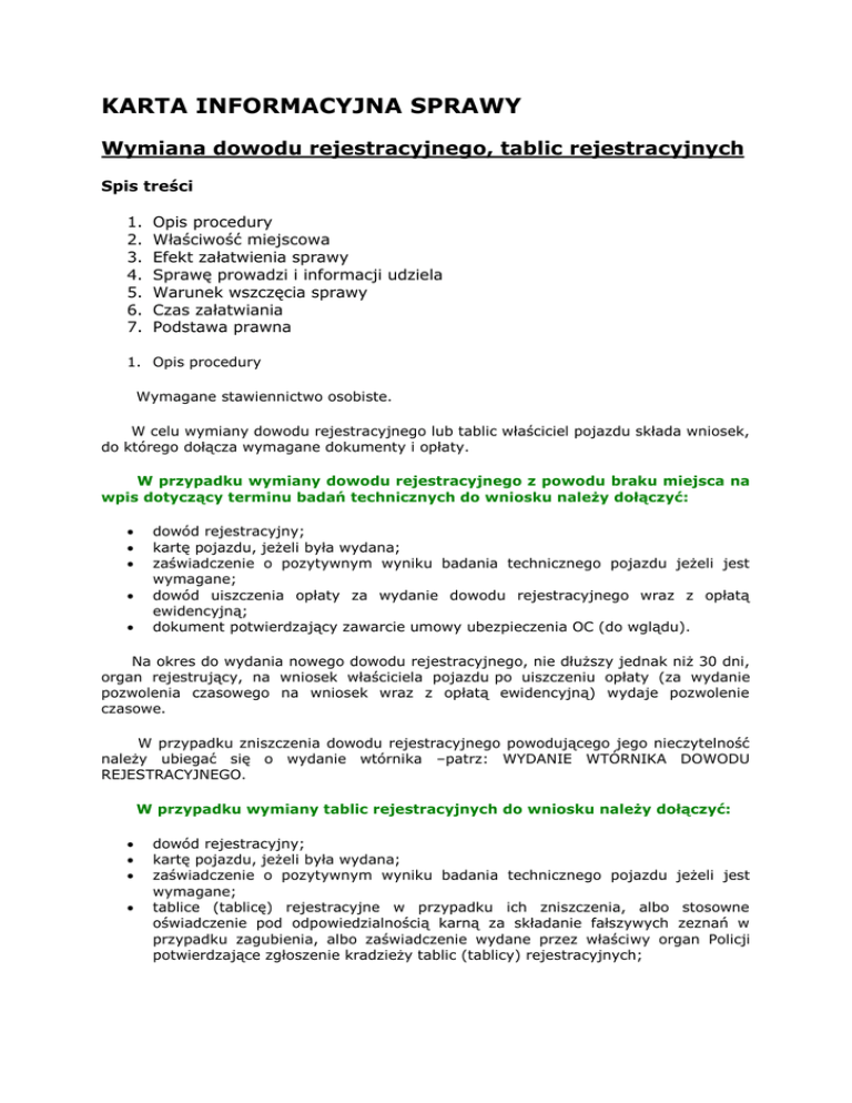 Wymiana dowodu rejestracyjnego, tablic