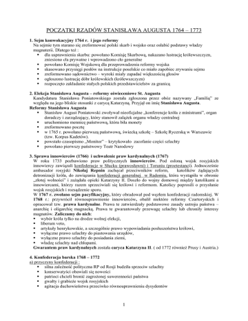 28. Początki rządów Stanisława Augusta Poniatowskiego