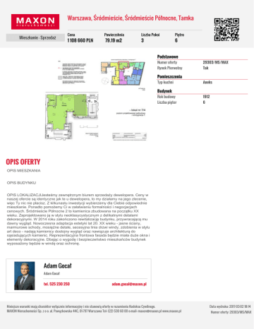 Warszawa, Śródmieście, Śródmieście Północne, Tamka Mieszkanie - Sprzedaż Cena 1 108 660 PLN Powierzchnia 79.19 m2 Liczba Pokoi 3 Piętro 6 Podstawowe Numer oferty 29303/MS/MAX Rynek Pierwotny Tak Pomieszczenia Typ kuchni Aneks Budynek Rok budowy 1912 Liczba pięter 6 OPIS OFERTY OPIS MIESZKANIA OPIS BUDYNKU OPIS LOKALIZACJIJesteśmy zewnętrznym biurem sprzedaży dewelopera. Ceny w naszej ofercie są identyczne jak te u dewelopera, to my działamy na jego zlecenie, więc Ty nic nie płacisz. Z kilkunastu inwestycji wybierzemy dla Ciebie odpowiednie mieszkanie. Ponadto pomożemy Ci w załatwianiu formalności i negocjacjach cenowych. Śródmieście Północne 2 to kamienica zbudowana na początku XX wieku. Zaprojektowano ją w stylu neoklasycystycznym z delikatnymi detalami dekoracyjnymi. W 2014 roku zakończono rewitalizację budynku, przywracającą mu dawny wygląd. Nowoczesna adaptacja estetyki lat 20. XX wieku - jasne ściany, marmurowe schody, mosiężne detale, secesyjna linia drzwi windy, zdobienia w stylu art deco - nadają kamienicy dostojny wygląd oraz nawiązuje architekturą do sąsiadujących kamienic. Reprezentacyjna frontowa fasada będzie miała duże okna i elementy dekoracyjne. Dbając o wygodę i bezpieczeństwo mieszkańców budynek wyposażony będzie w windę oraz ochronę. Adam Gocał Adam Gocał tel. 525 230 250 [email protected] Niniejsze warunki mają charakter wyłącznie informacyjny i nie stanowią oferty w rozumieniu Kodeksu Cywilnego. MAXON Nieruchomości Sp. z o o. ul. Powązkowska 44C, 01-797 Warszawa Tel: (22) 530 60 00 e-mail: [email protected] www.maxon.pl Data wydruku: 2017-03-02 18:14 Numer oferty: 29303/MS/MAX