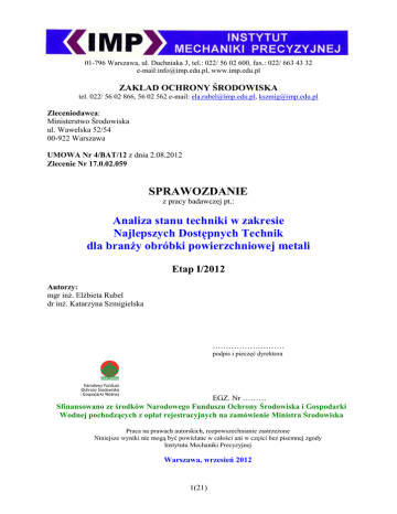 analiza stanu techniki w zakresie BAT dla branży obróbki
