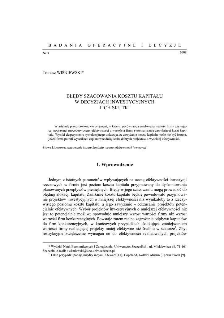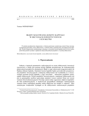 BŁĘDY SZACOWANIA KOSZTU KAPITAŁU W DECYZJACH