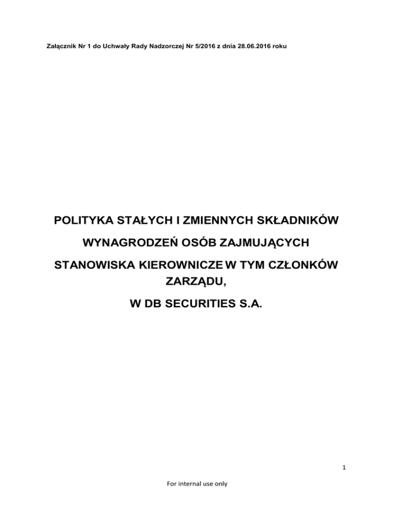 Załącznik Nr 1 do Uchwały Rady Nadzorczej Nr 5/2016 z dnia 28.06.2016 roku