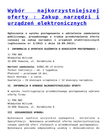 Wybór najkorzystniejszej oferty : Zakup narzędzi i urządzeń