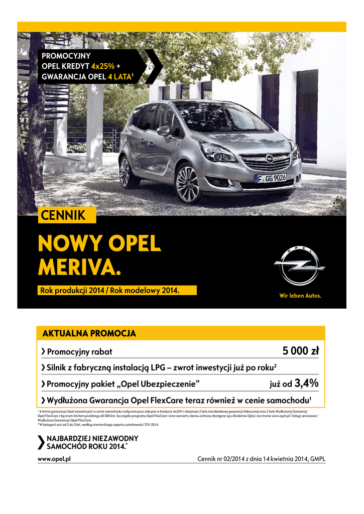 Opel Meriva ceny 2014 - Opel Meriva cennik 2014