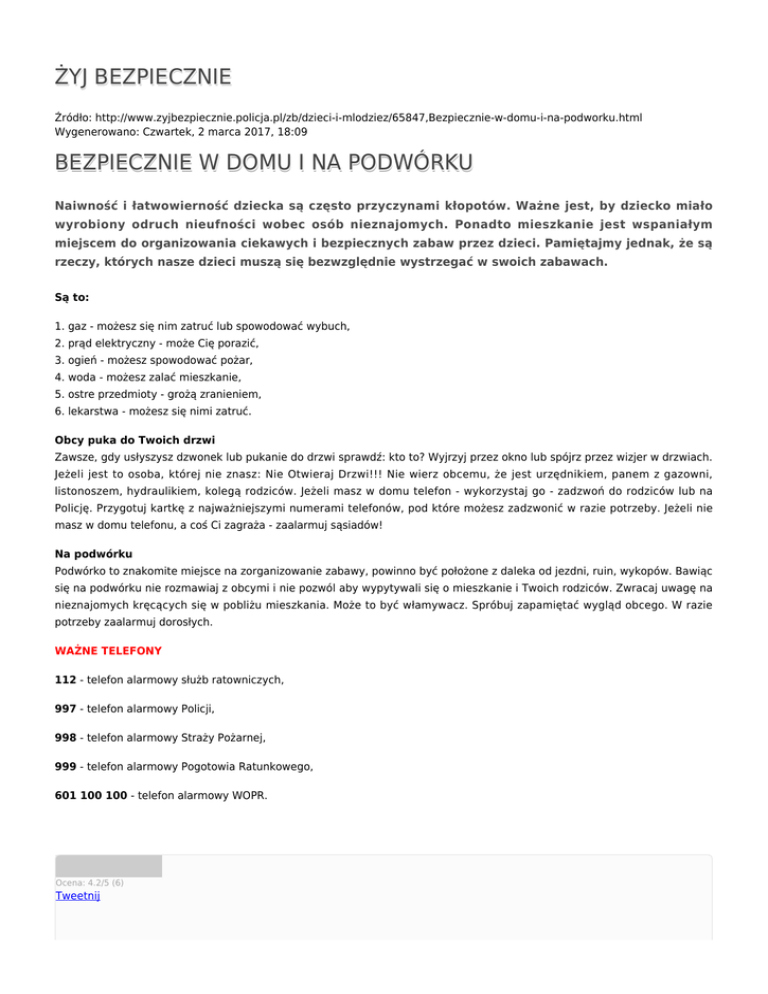 ŻYJ BEZPIECZNIE BEZPIECZNIE W DOMU I NA PODWÓRKU