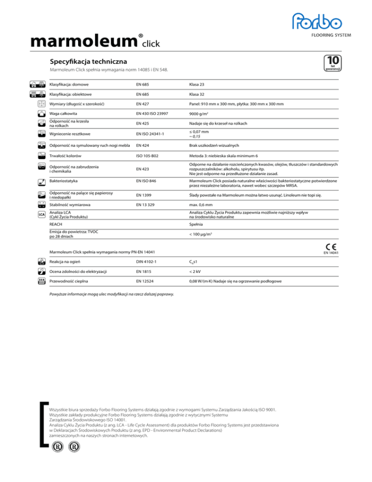 Marmoleum Click spełnia wymagania normy PN-EN 14041