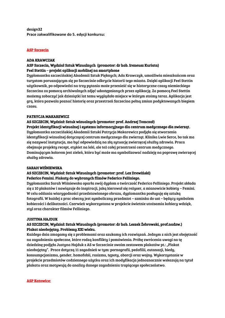 design32 Prace zakwalifikowane do 5. edycji konkursu
