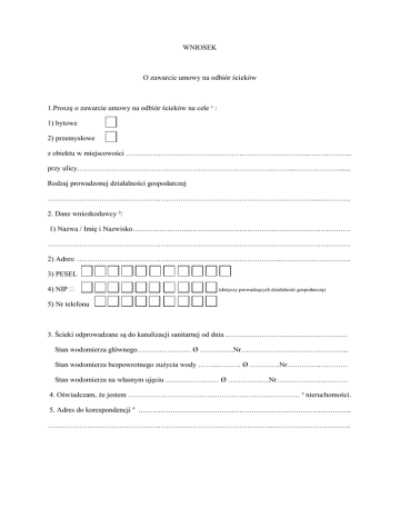 WNIOSEK O zawarcie umowy na odbiór ścieków 1.Proszę o