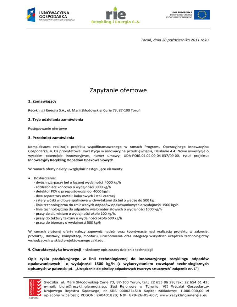 Zapytanie ofertowe - Recykling i Energia