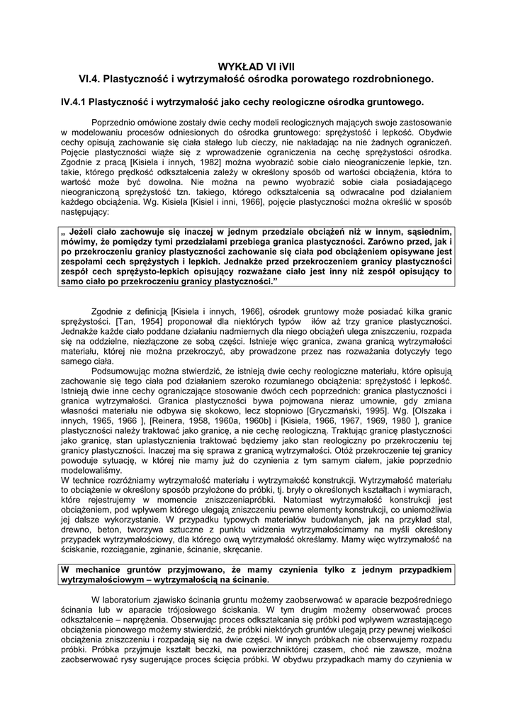 IV.4.1 Plastyczność i wytrzymałość jako cechy reologiczne ośrodka gruntowego.