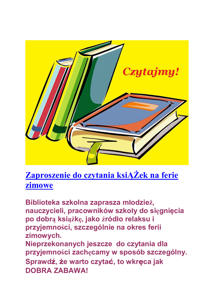 Zaproszenie do czytania ksiĄŻek na ferie zimowe