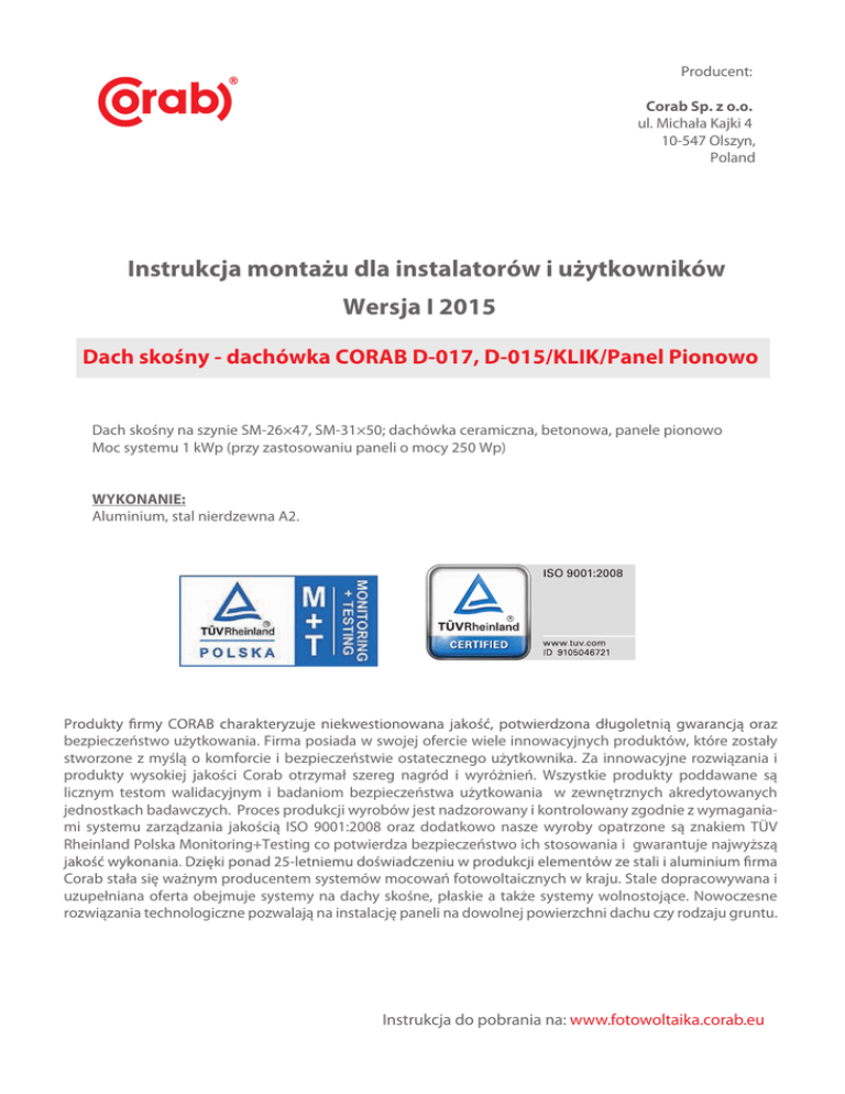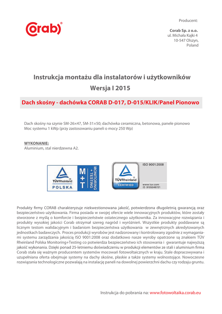 Instrukcja WS-006 - Corab – Fotowoltaika