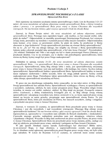 Poziom 1 Lekcja 3 SPRAWIEDLIWOŚĆ POCHODZĄCA Z ŁASKI