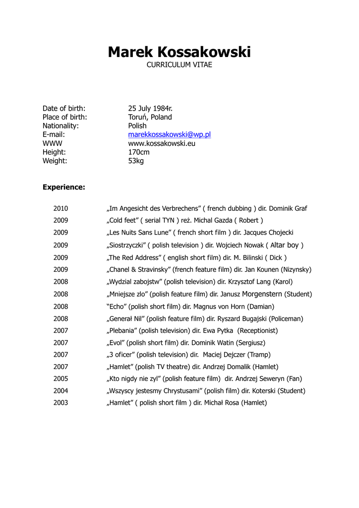 Curriculum vitae - Marek M. Kossakowski