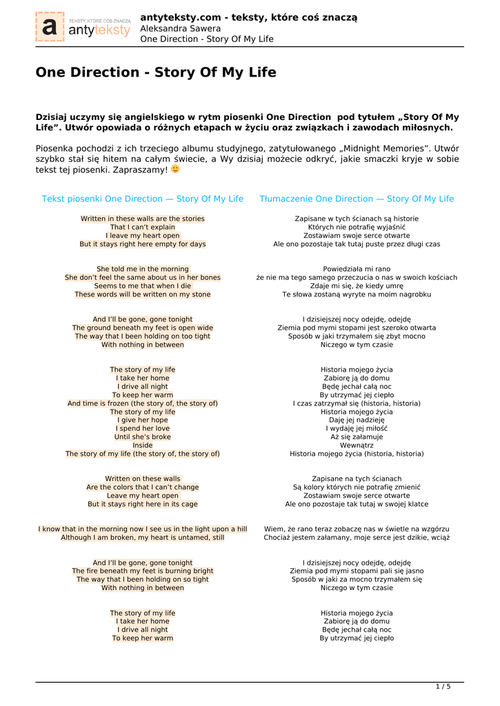 Dzisiaj uczymy się angielskiego w rytm piosenki One Direction pod tytułem „Story Of My