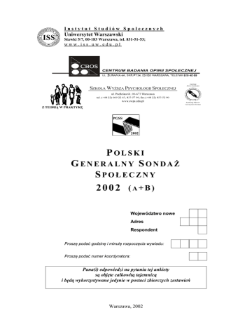 ORAZ "KWESTIONARIUSZA PGSS 2OO2". UDAJĄC SIĘ POD WYLOSOWANY ADRES ANKIETER