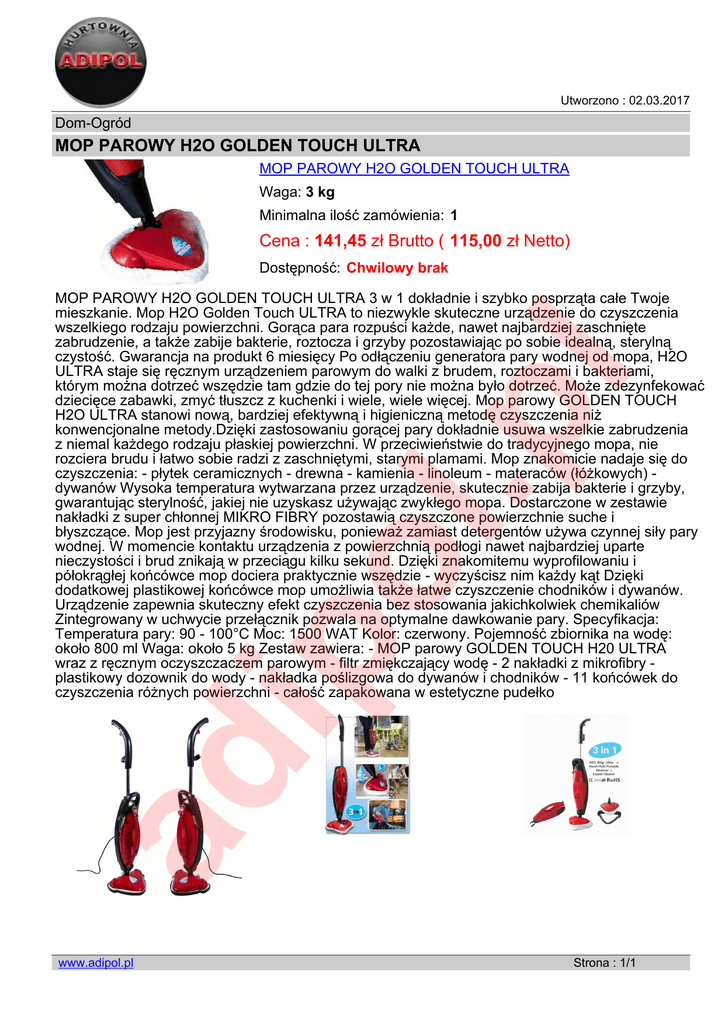 MOP PAROWY H2O GOLDEN TOUCH ULTRA Cena