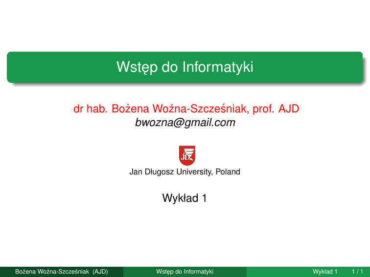 Wstep do Informatyki - Dr hab. Bożena Woźna