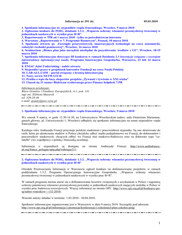 Informacja nr 291 (6) - Politechnika Wrocławska