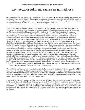 czy rzeczpospolita ma szanse na normalnosc PDF book - read or download czy rzeczpospolita ma szanse na normalnosc czy rzeczpospolita ma szanse na normalnosc. Now you can see czy rzeczpospolita ma szanse na normalnosc page on our library. On this page you can get information, citations, manuals and alternative version of czy rzeczpospolita ma szanse na normalnosc. Also you can download czy rzeczpospolita ma szanse na normalnosc in PDF, DOC or TXT formats using next direct link. In our library you can find mane books, for example : czy rzeczpospolita ma szanse na normalnosc, new immigrants in the united states: readings for second language educators, jian kang yi dian ling, benson: the autobiography, international fragmentation of production: the impact of outsourcing on the japanese economy, rautapryaitti-koa, alphaville: a film, normandy 44, rubber!: fun, fashion, fetish, zhang shizhao, my s sound box, le stanze di eros, financial directories of the world: a guide to information sources in finance, economics, employment, property and the law, regularization of inverse problems, problemy natsionalnykh shkol i iazykovaia situatsiia v respublike altai, a bibliography of american indian land claims, zhongguo li dai shi ci ming ju jian shang da ci dian: zhongguo lidai shicimingju jianshang dacidian, alexander mackenzie and the explorers of canada, mary and the dirty water: and, brother fox and the wasp ; brother fox and the hen, shen jing tong yu fang yu zhi liao, revitalisasi pranata sosial pasca konflik maluku, a history of tuamgraney & scariff: since earliest times, internationale rechtshulp in strafzaken: internationale ontneming van voordeel en overige verdragen met rechtshulpbepalingen, wirtschaftliche macht: tatsachen u. theorien, zheng wu de gong ci, tongbuga kongdongche: pyonghwa wa ponyong ui tamnon, homeowners encyclopedia of house construction, the future of finance: how private equity and venture capital will shape the global economy, asian leaders: a bibliography, from fatwa to jihad: the rushdie affair and its legacy, nihon no kaisha seido hattatsushi no kenky, breve guida alla metrica italiana, the career change handbook: how to find out what youre good at and what you enjoy - then get someone to pay you for it, datos basicos para la historia financiera de espana (1850-1975), shandong xin shi qi di shi nian, czy rzeczpospolita ma szanse na normalnosc, all this books you can read on our site or download in PDF - czy rzeczpospolita ma szanse na normalnosc, DOC - czy rzeczpospolita ma szanse na normalnosc or TXT - czy rzeczpospolita ma szanse na normalnosc format online. Our catalogue provide simple ways so that you can find a czy rzeczpospolita ma szanse na normalnosc PDF file without the digging. And by having usage of our ebooks online or by keeping it , you have convenient answers with czy rzeczpospolita ma szanse na normalnosc. To begin with finding czy rzeczpospolita ma szanse na normalnosc, you are find our website that includes a comprehensive assortment of czy rzeczpospolita ma szanse na normalnosc manuals listed. These review site is the biggest of these that have czy rzeczpospolita ma szanse na normalnosc, literally hundreds of thousands of different products represented. You will also see that there are specific sites catered to different product categories or types, brands or niches related to czy rzeczpospolita ma szanse na normalnosc. So depending on what exactly you are searching, you will be able to choose ebooks czy rzeczpospolita ma szanse na normalnosc to fit your own needs, czy rzeczpospolita ma szanse na normalnosc. Page 1 of czy rzeczpospolita ma szanse na normalnosc