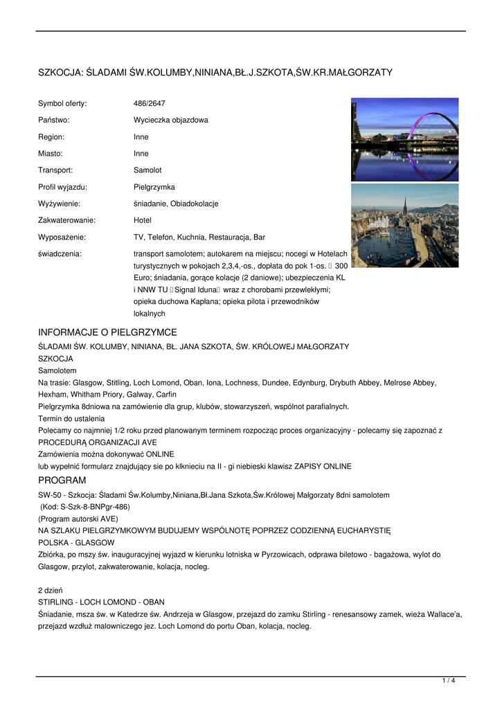 SW-50 - Szkocja: Śladami Św.Kolumby,Niniana,Bł.Jana Szkota,Św.Królowej Małgorzaty 8dni samolotem